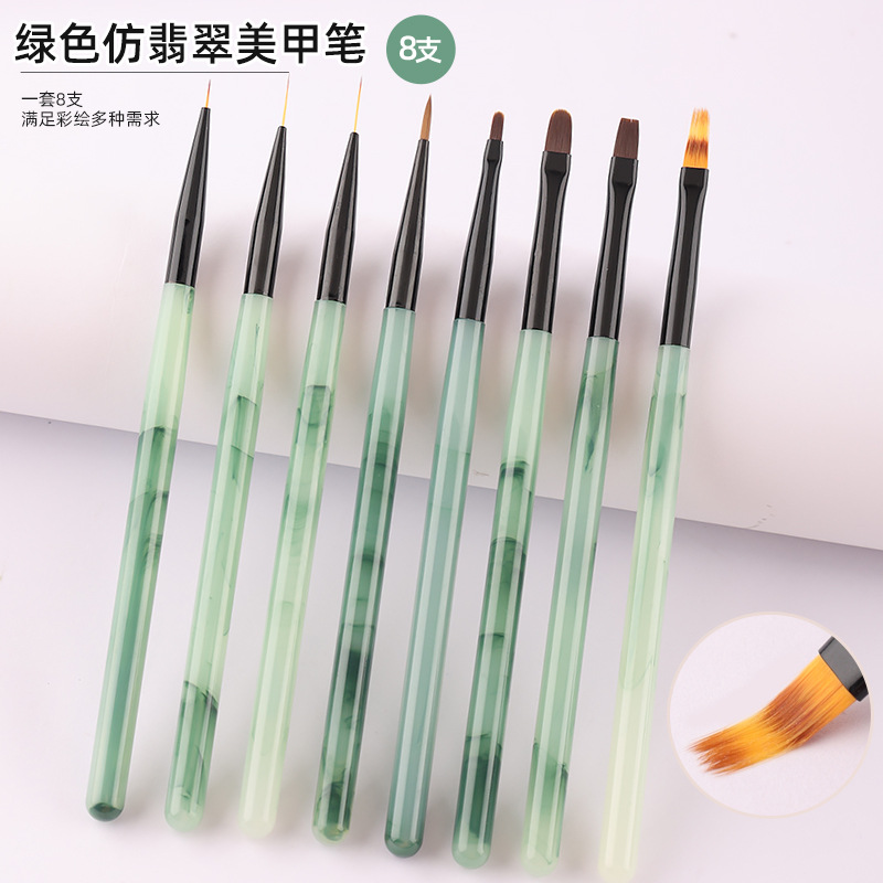 翡翠グリーン風ネイルアートブラシセット 8本入り 工場卸売 レースペン 秋菊型丸頭 光療法ネイルアートペン