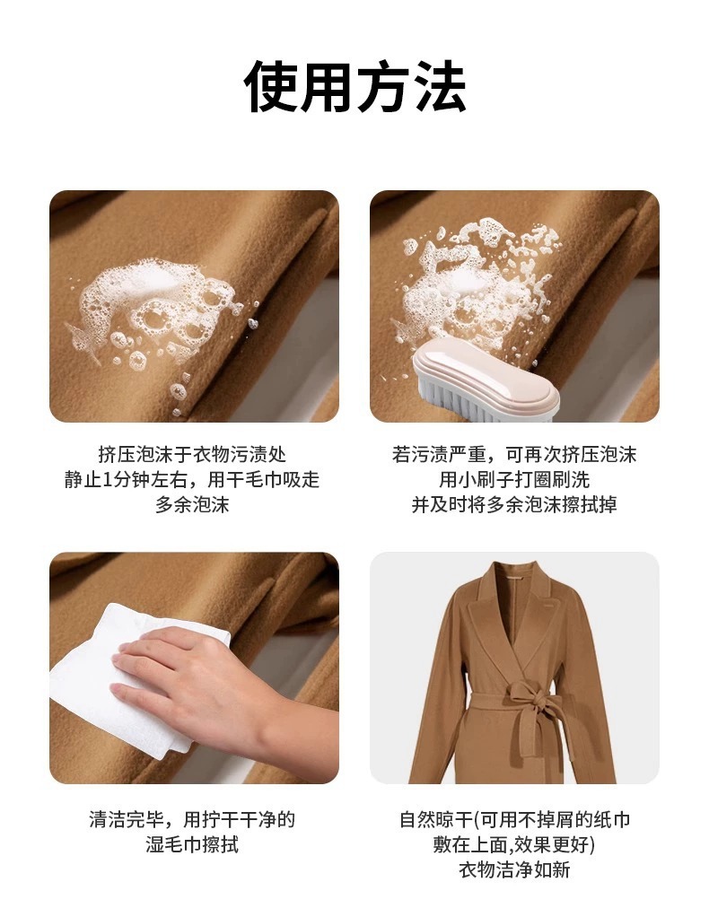 毛呢大衣专用干洗剂呢子双面羊绒免洗泡沫清洗喷雾清洁去污渍神器
