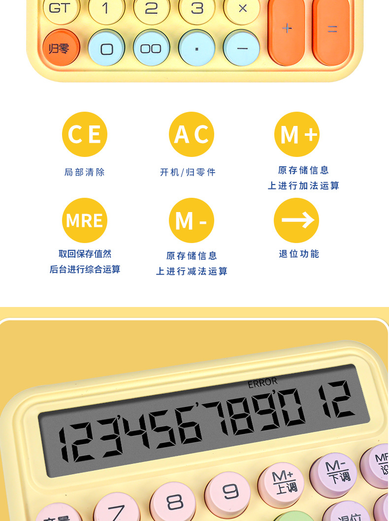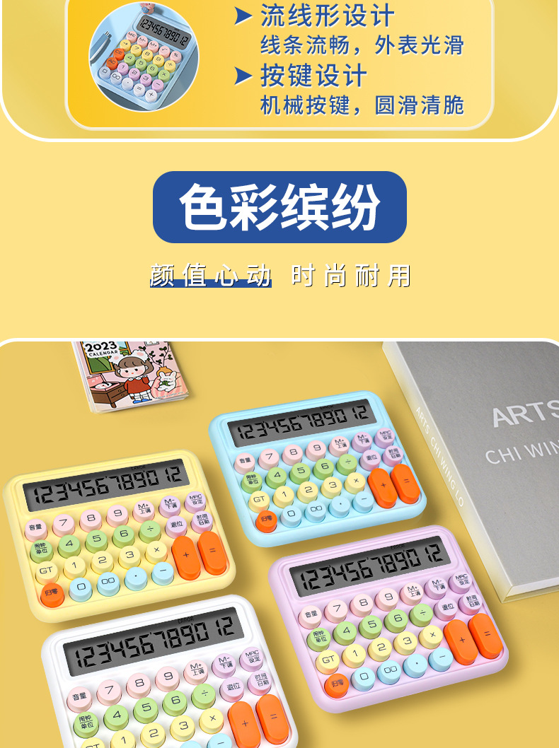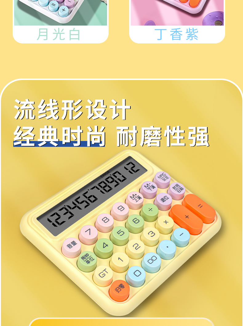新高顔値計算機円形機械キーボード計算機グラデーション色学生試験専用便利計算機
