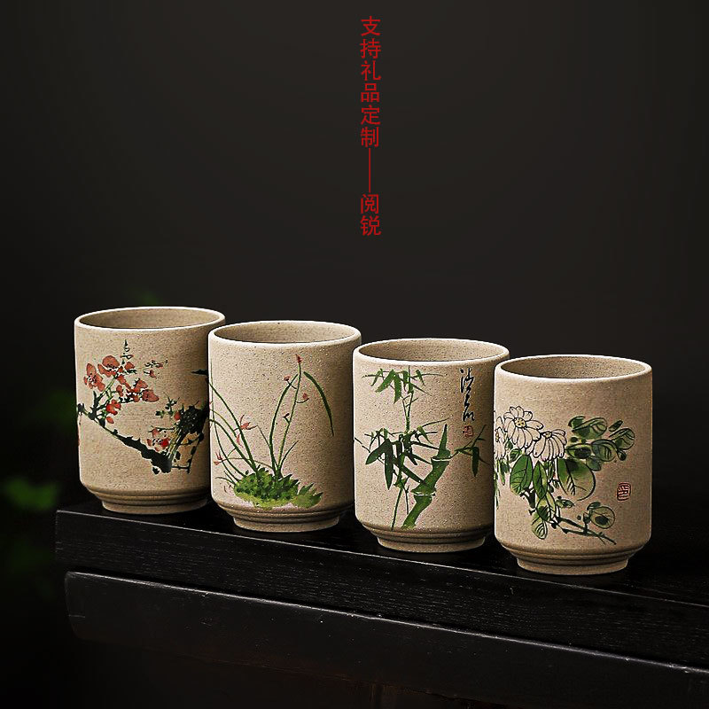 阅锐 大型粗陶茶杯 水杯 セラミックカップ 180ml 陶器カップ 直筒カップ 和風レトロカップ
