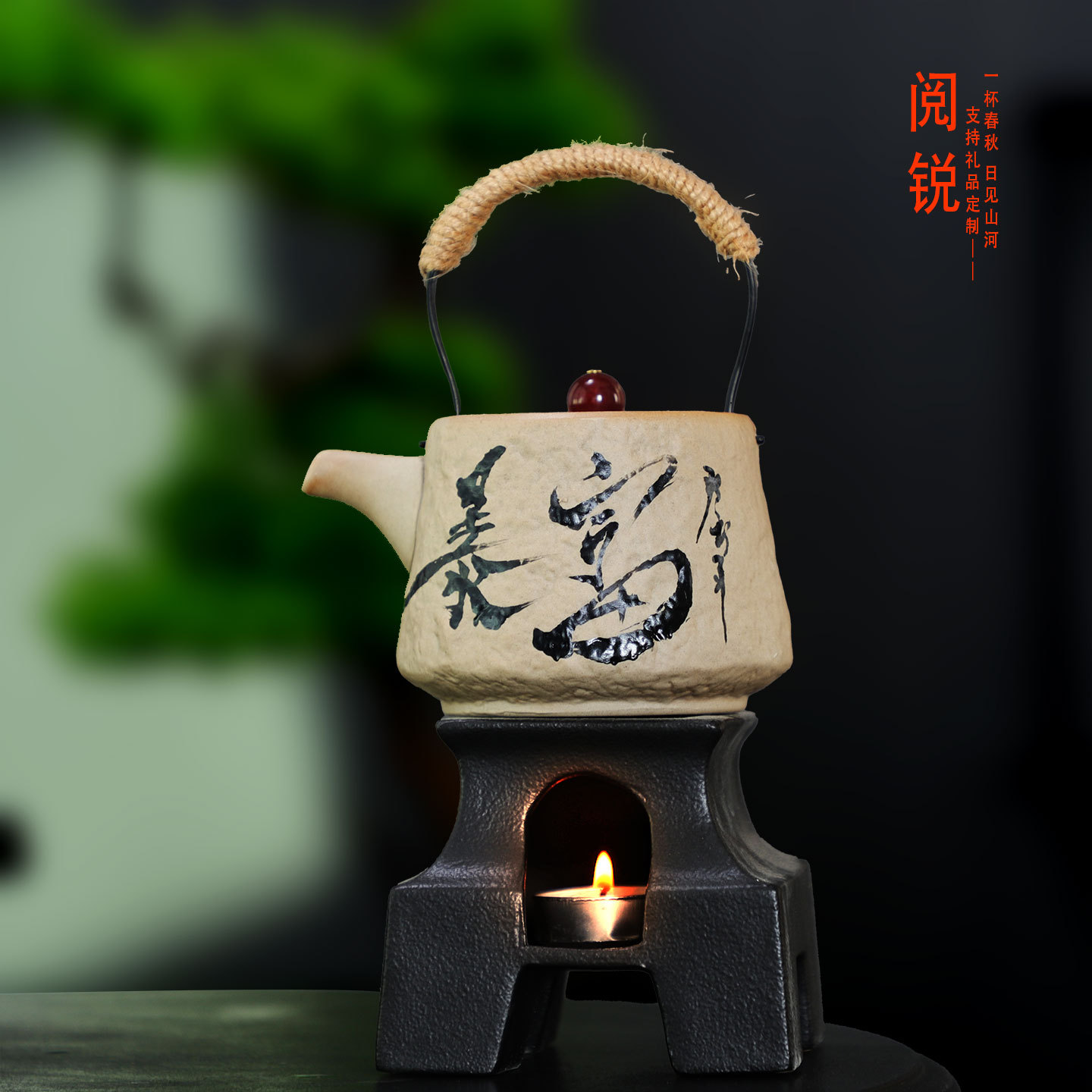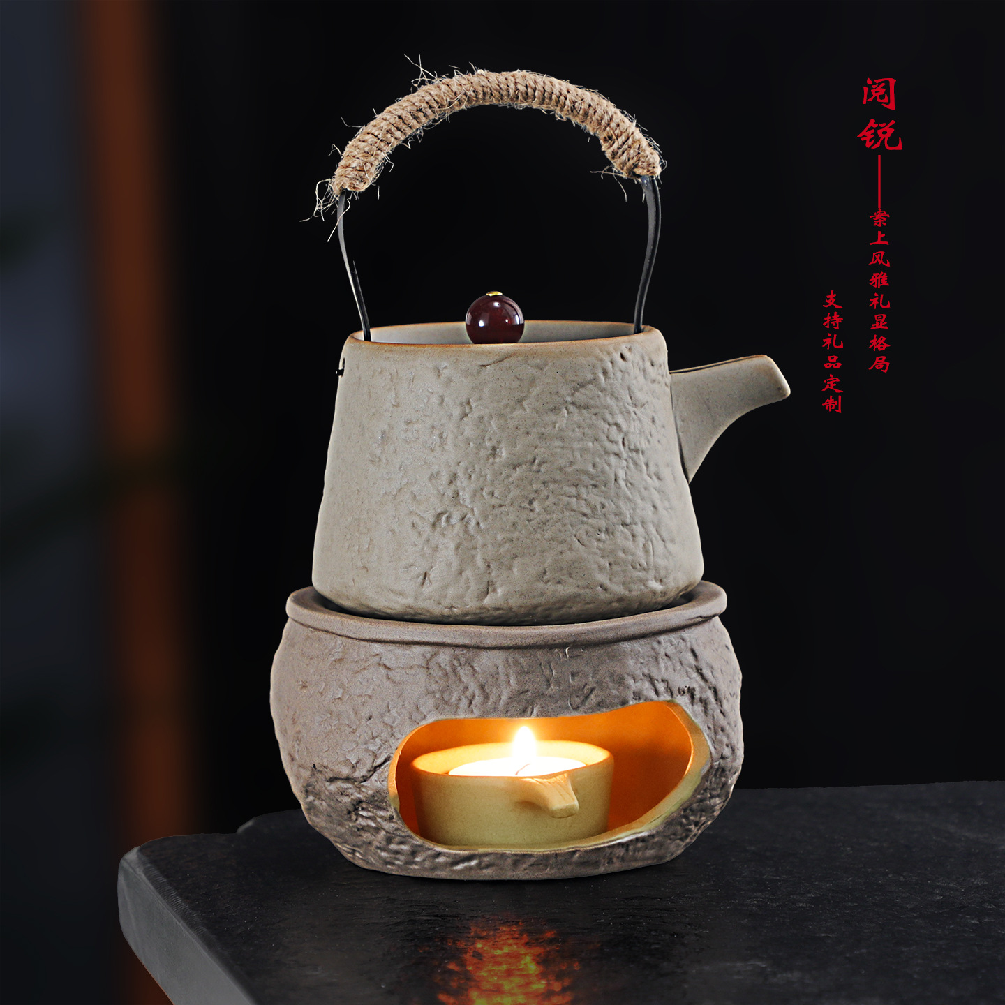 阅锐 持ち手付き陶器ポット 家庭用粗陶茶器 酒精キャンドル恒温茶器 健康維持用新陶器ポット