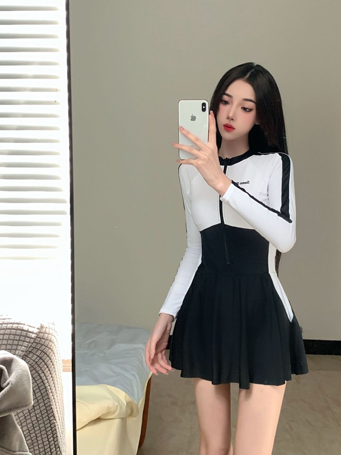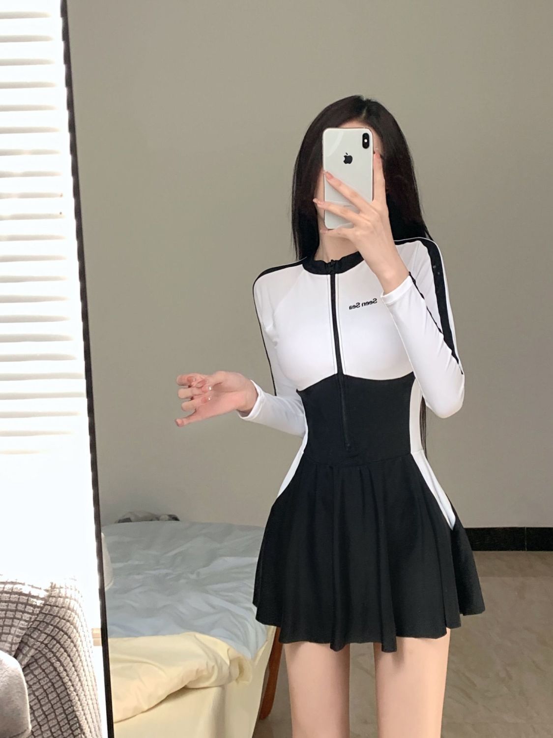 女の子水着 レディース ワンピース 長袖 日焼け止め 高級感 控えめ 学生 かわいい 和風 美少女水着