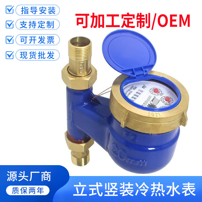カスタマイズされた水道メーターの加工、垂直設置、下から上への給水と排水の温水および冷水メーター、家庭用水道水ネジ付き真鍮水道メーター