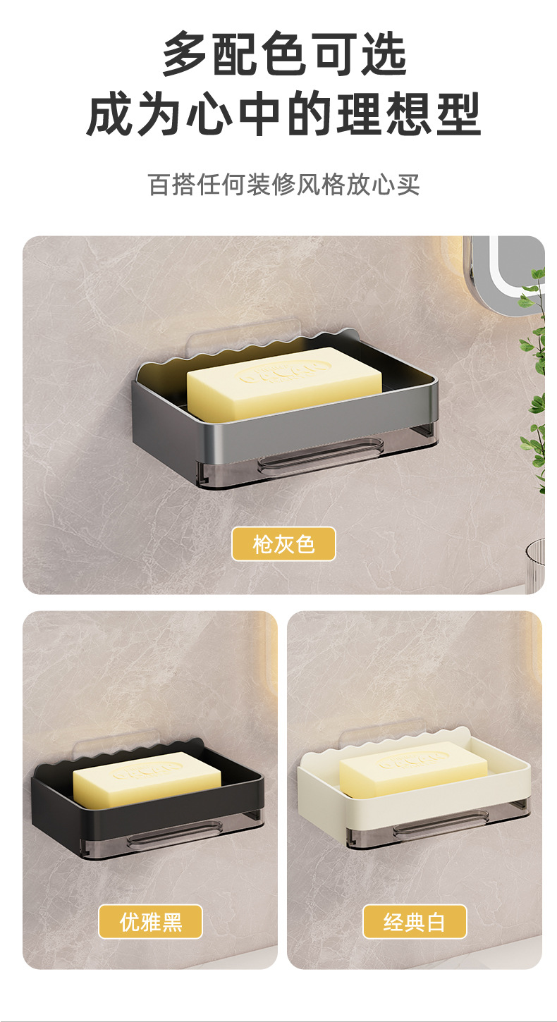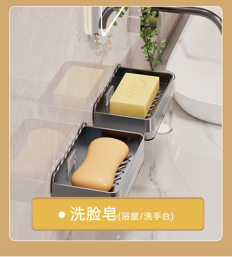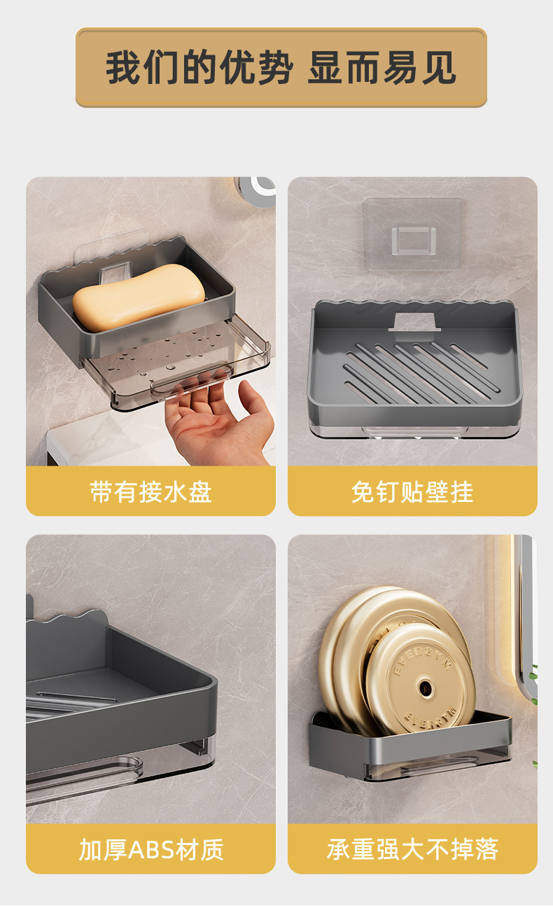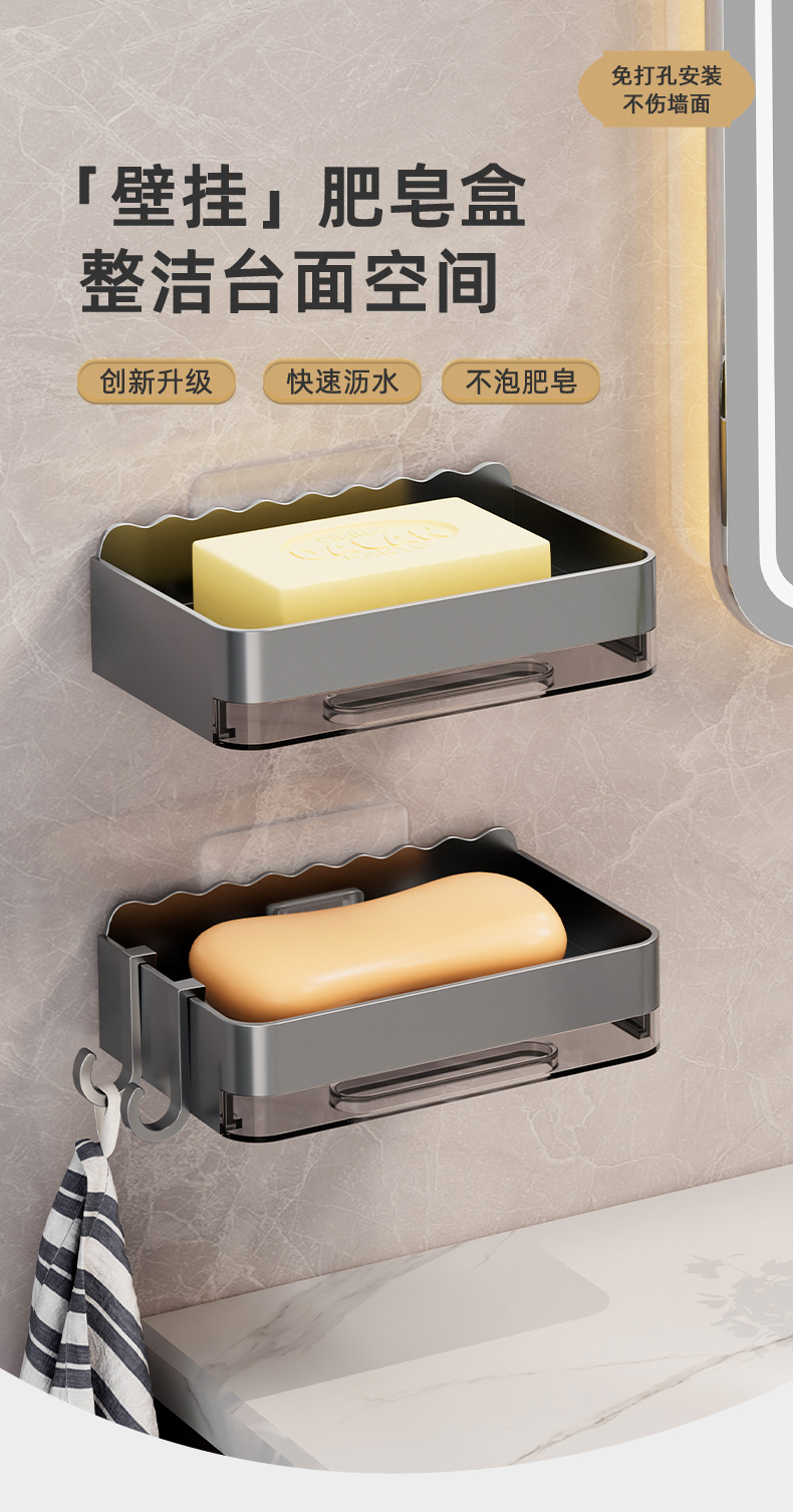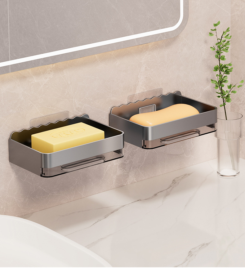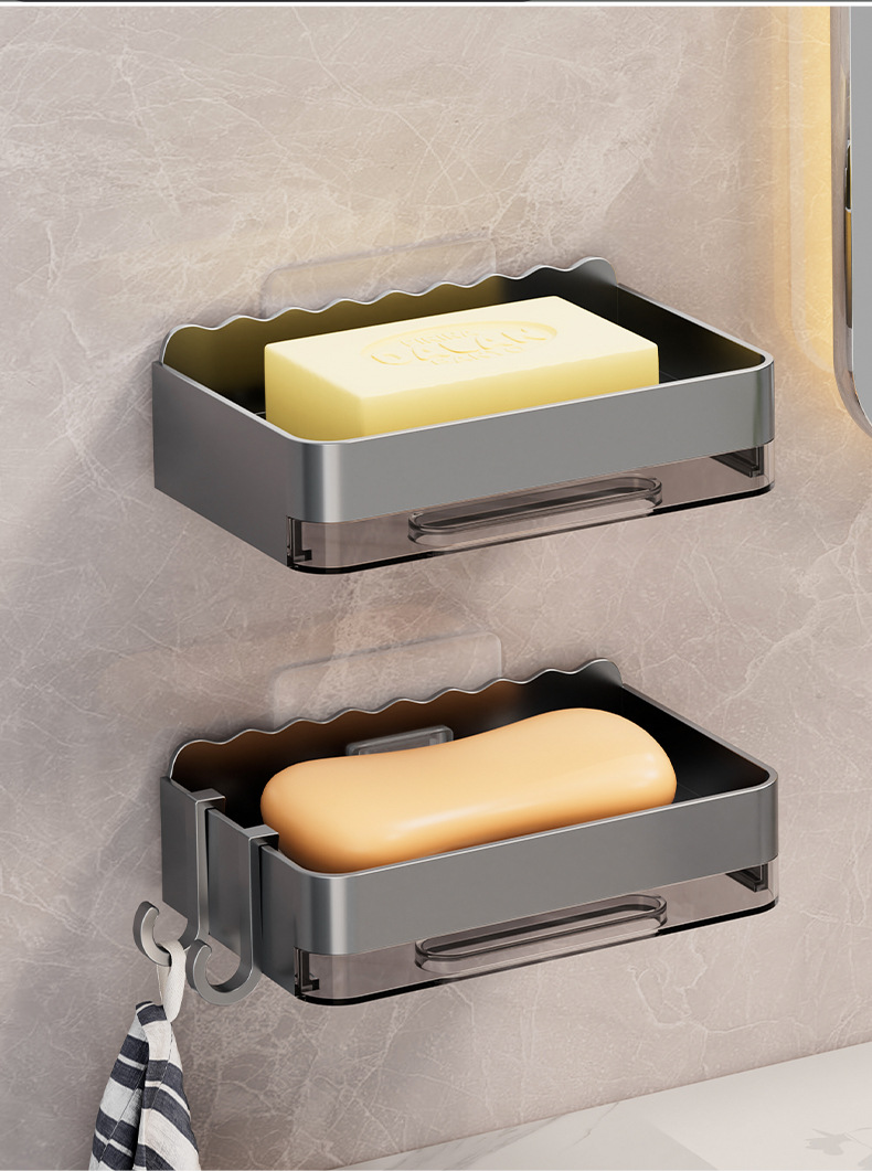 軽くて豪華な石鹸の箱の家庭用は穴を開けないで壁掛け式の壁の石鹸の箱を掛けます。