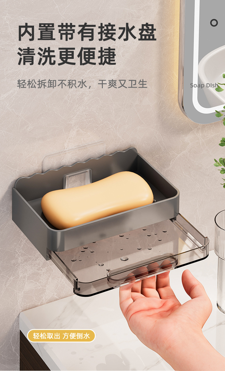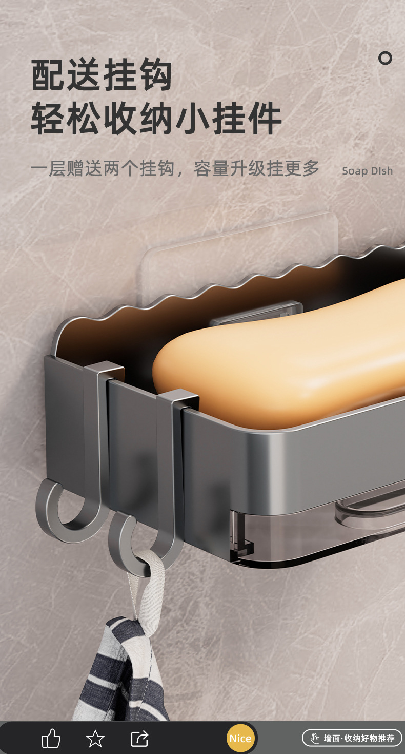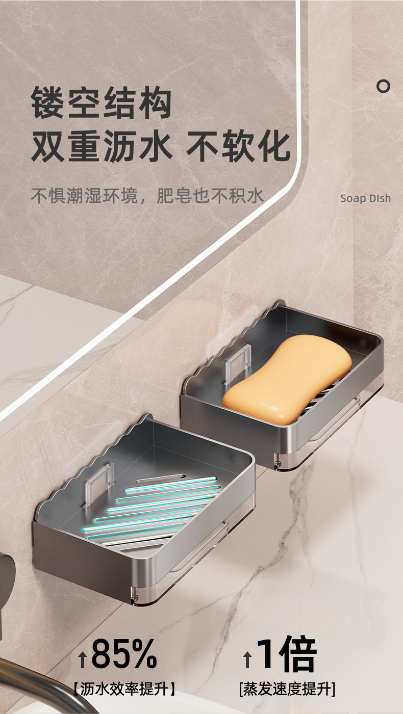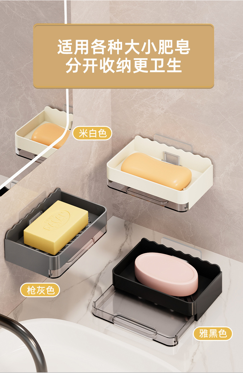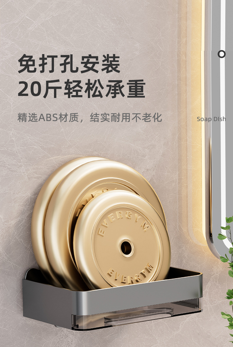 軽くて豪華な石鹸の箱の家庭用は穴を開けないで壁掛け式の壁の石鹸の箱を掛けます。