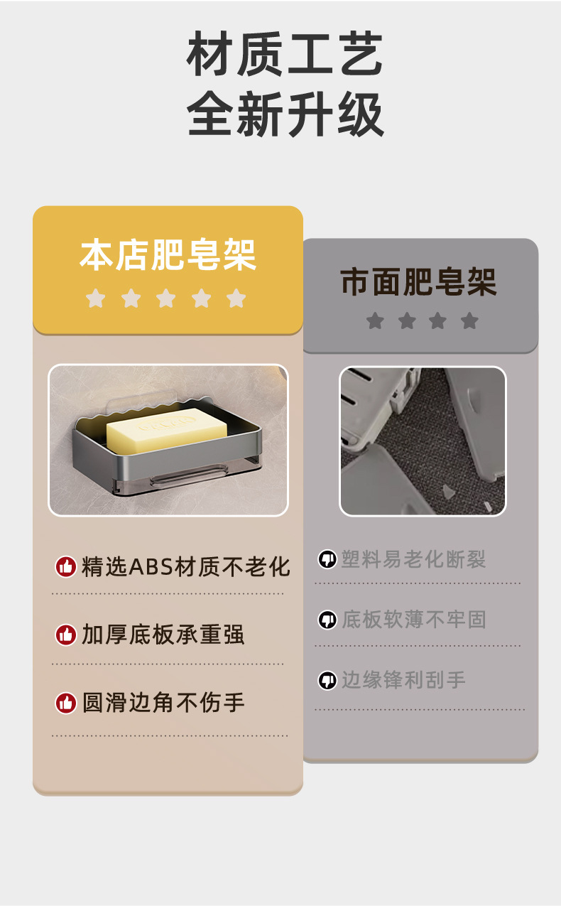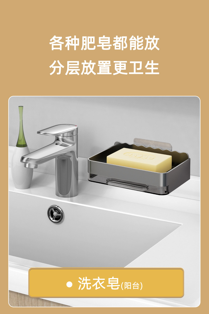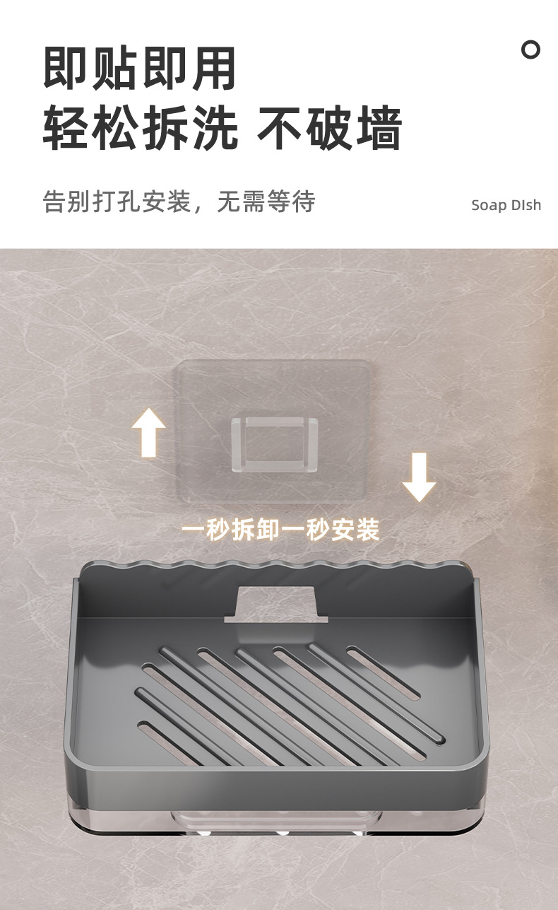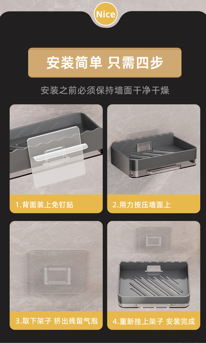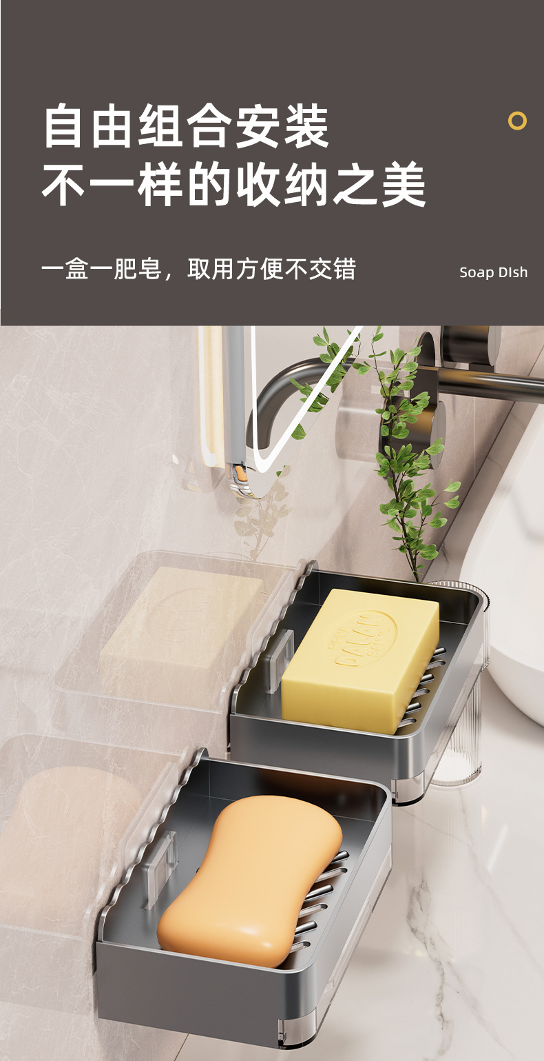 軽くて豪華な石鹸の箱の家庭用は穴を開けないで壁掛け式の壁の石鹸の箱を掛けます。