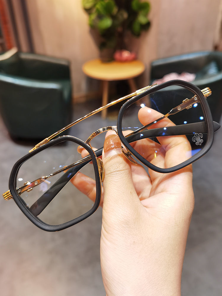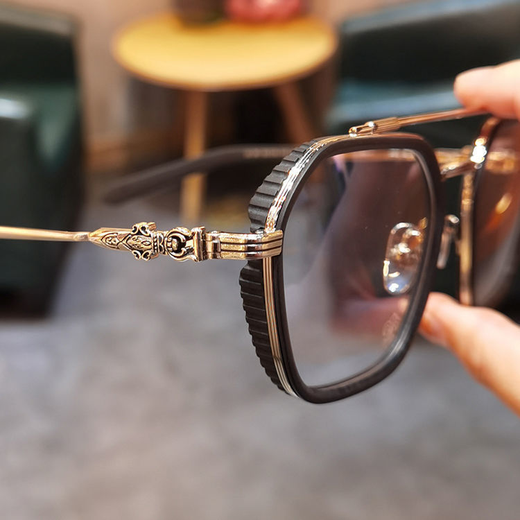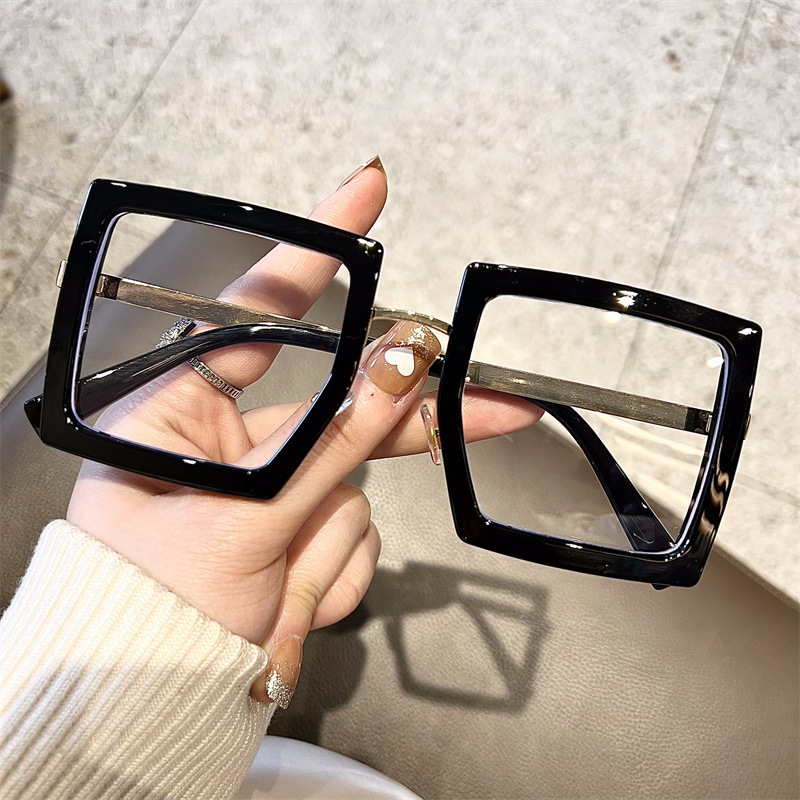太枠の四角形の青い光のメガネの枠の女性の韓国版のネットの赤い金のすっぴんの黒色の平光の鏡の大きい顔の男性の復古のメガネ