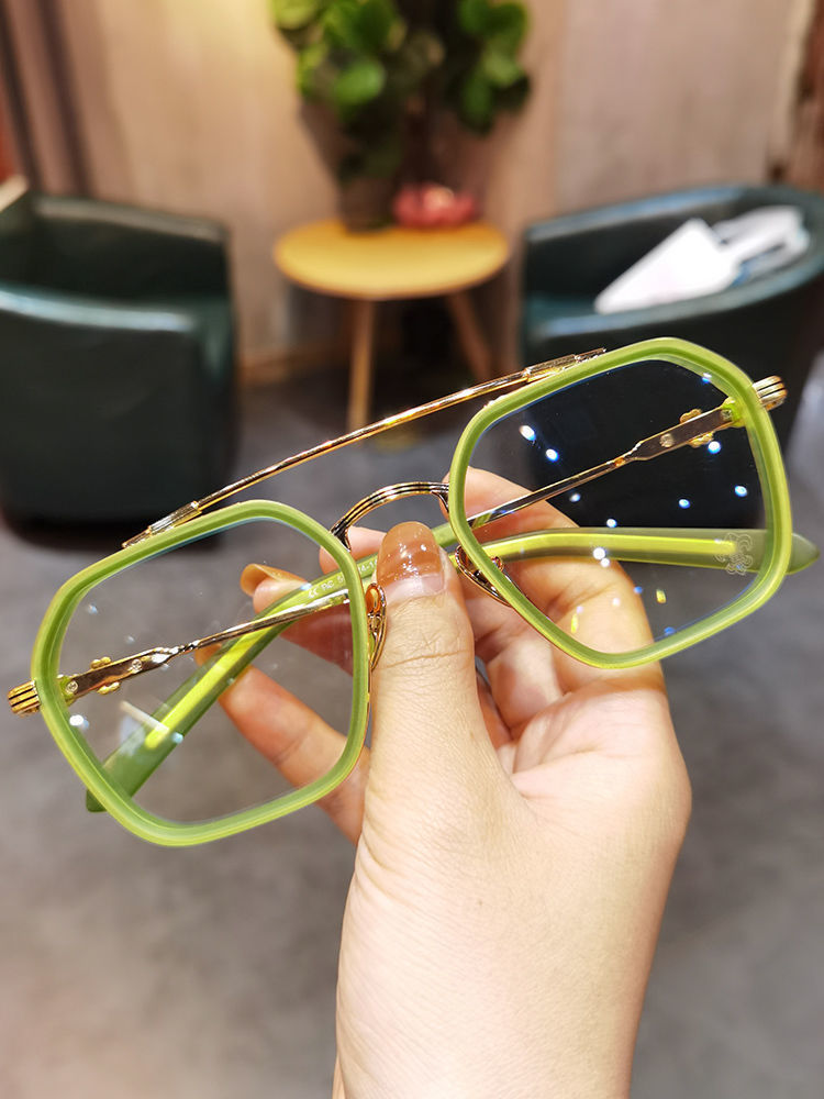 2025年新作 ダブルブリッジメガネ レトロスクエアフレーム 近視用 ネットセレブ愛用 ブルーライトカット おしゃれ 流行 フラットレンズ 大きめフレーム