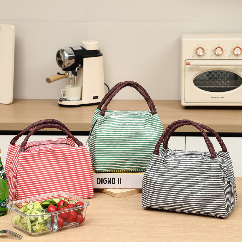 シンプルなストライプの手持ち保温バッグ弁当箱収納袋アルミ膜断熱弁当バッグ