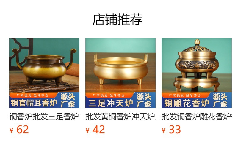 メーカー卸売り銅香炉黄銅供仏仏堂は家庭用香炉室内財神を供える
