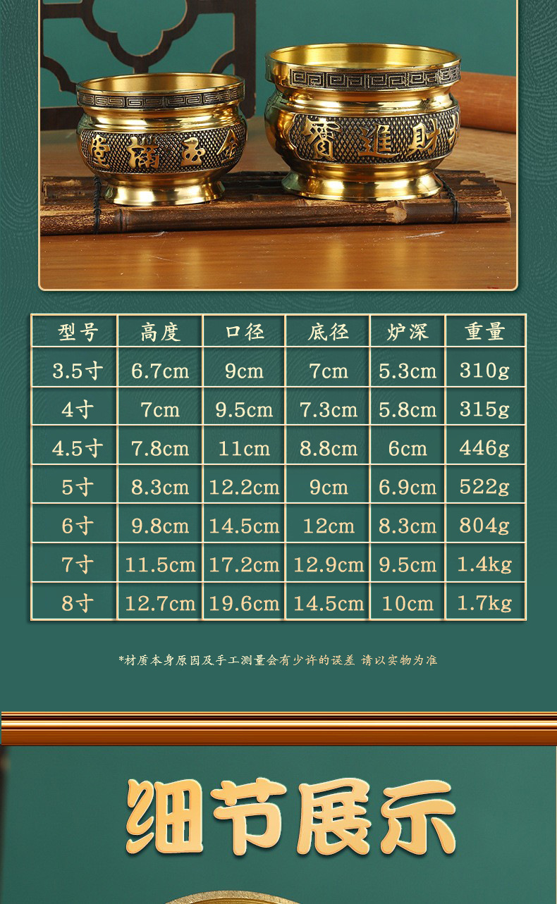 純真鍮合金香炉、家庭用屋内香炉、観音と富の神を祀る香炉、白檀香炉