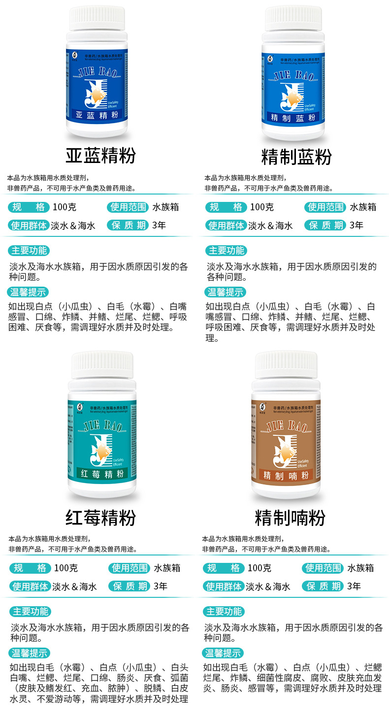 哈潔宝100g粉剤メチル青浄水質安定剤常用観賞魚用