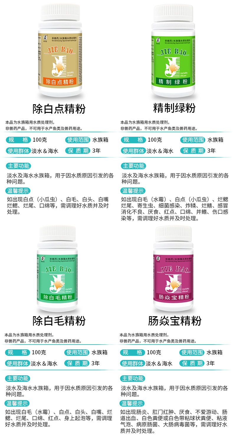ハークリーン宝は多くの同タイプのバラ日本速溶黄粉緑粉水族観賞魚殺菌腐った尾白点を持っている