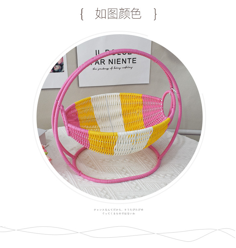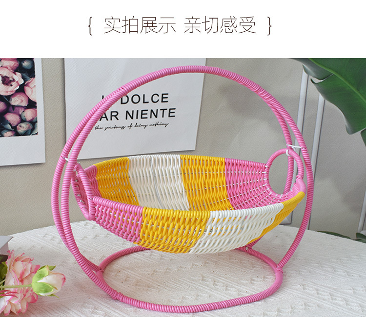 籐模様の手編み収納バスケット、クリエイティブな丸型吊り下げフルーツバスケット、家庭用、ホテル用、スナック、ドライフルーツ収納バスケット、猫の巣