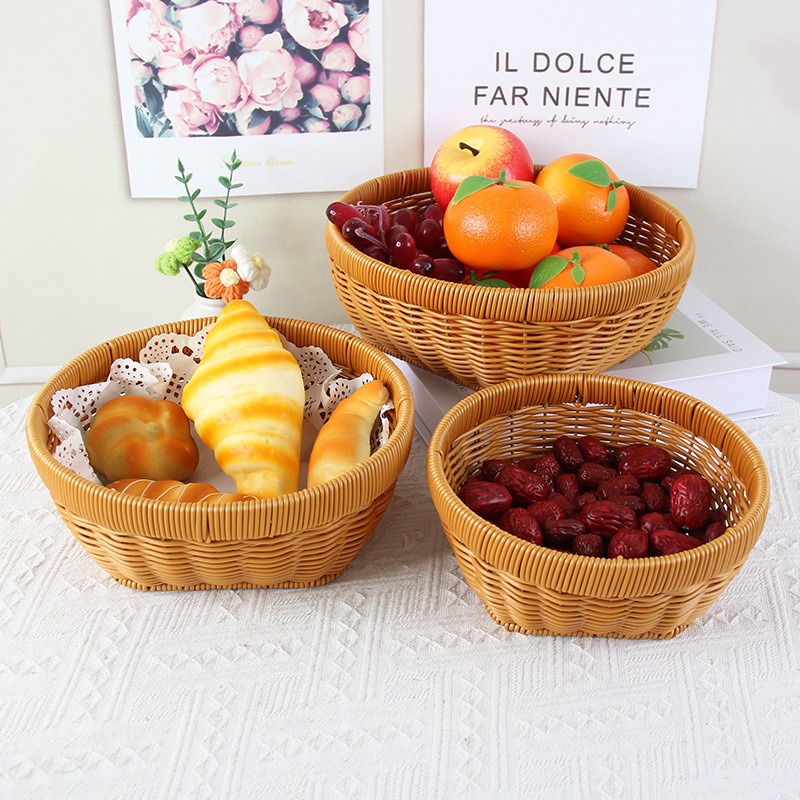 籐編みバスケット果物バスケット収納棚長方形スナック果物野菜展示プラスチック棚パンバスケット果物バスケット