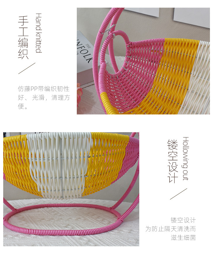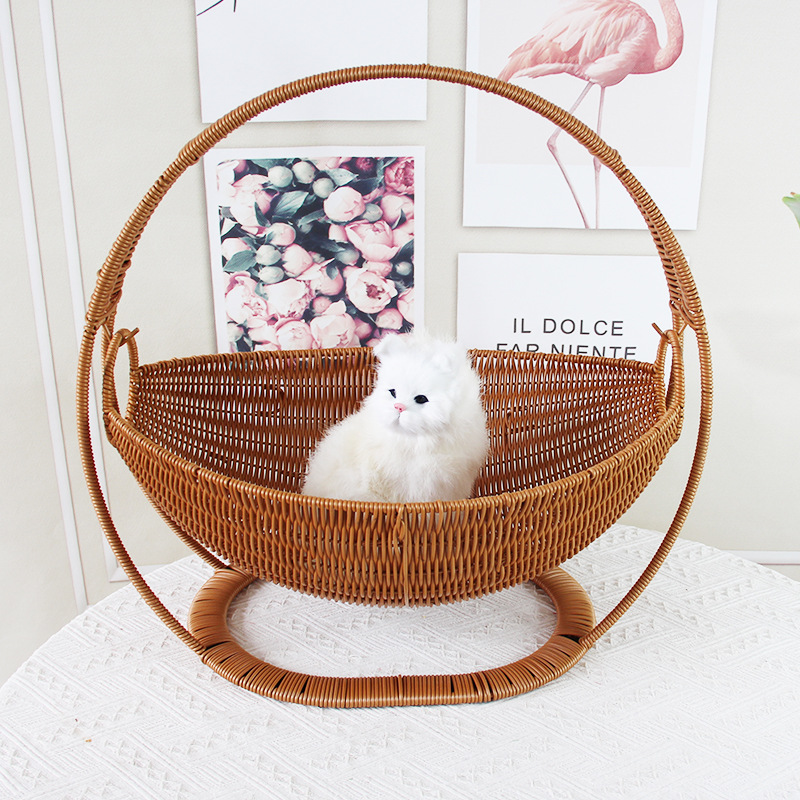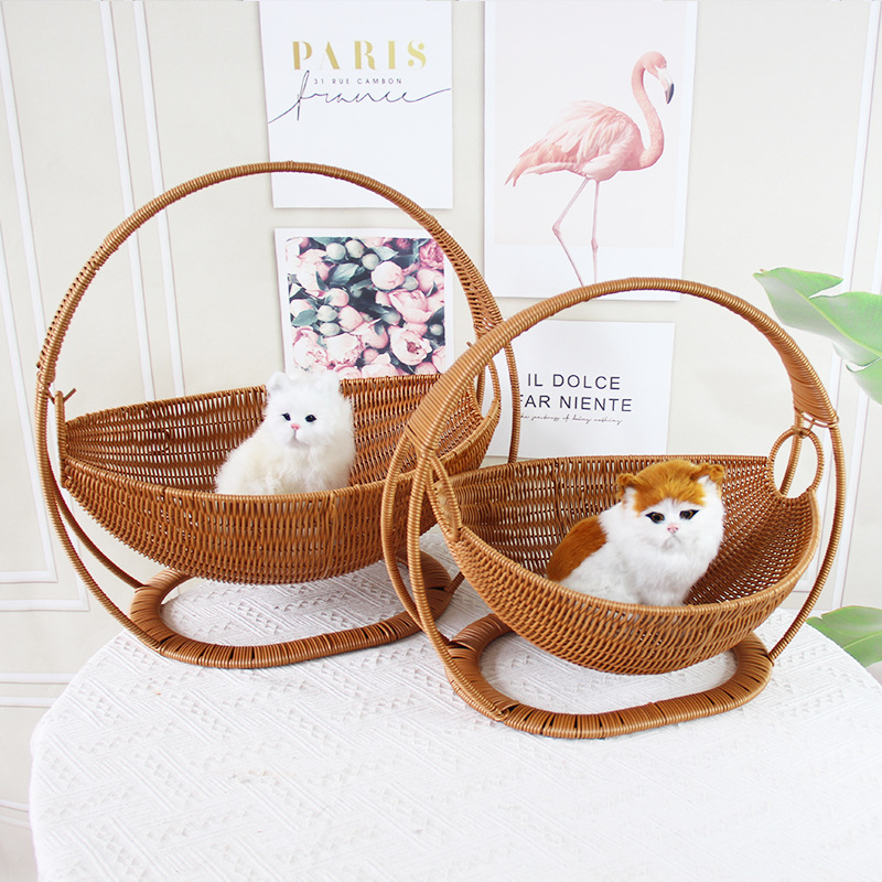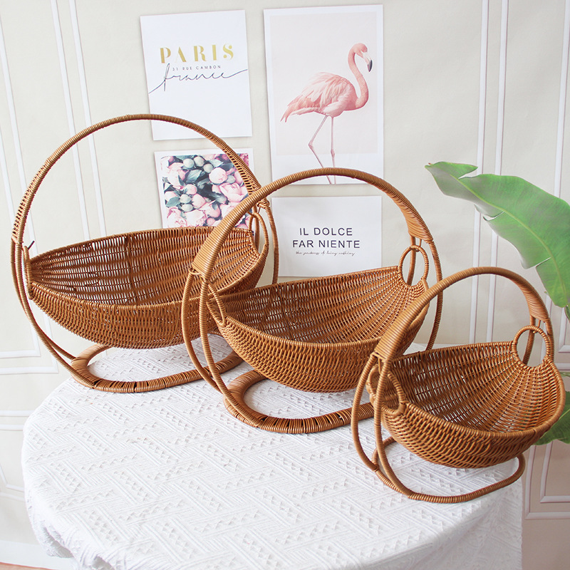 模造籐手織り収納バスケットラウンドハンギングフルーツバスケットホームホテルスナックドライフルーツ収納バスケット猫の巣バスケット