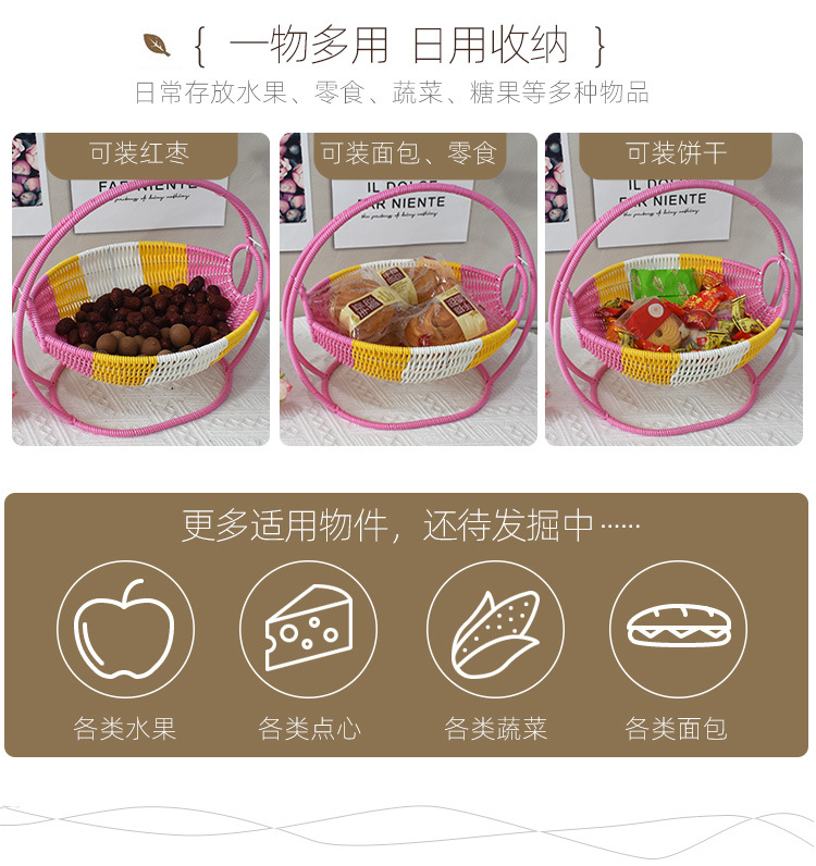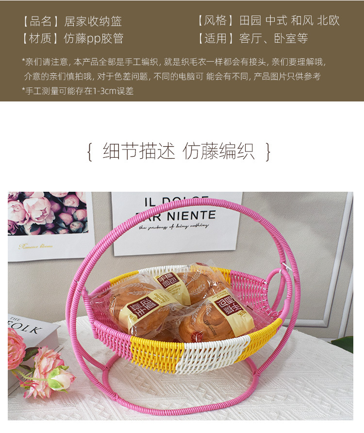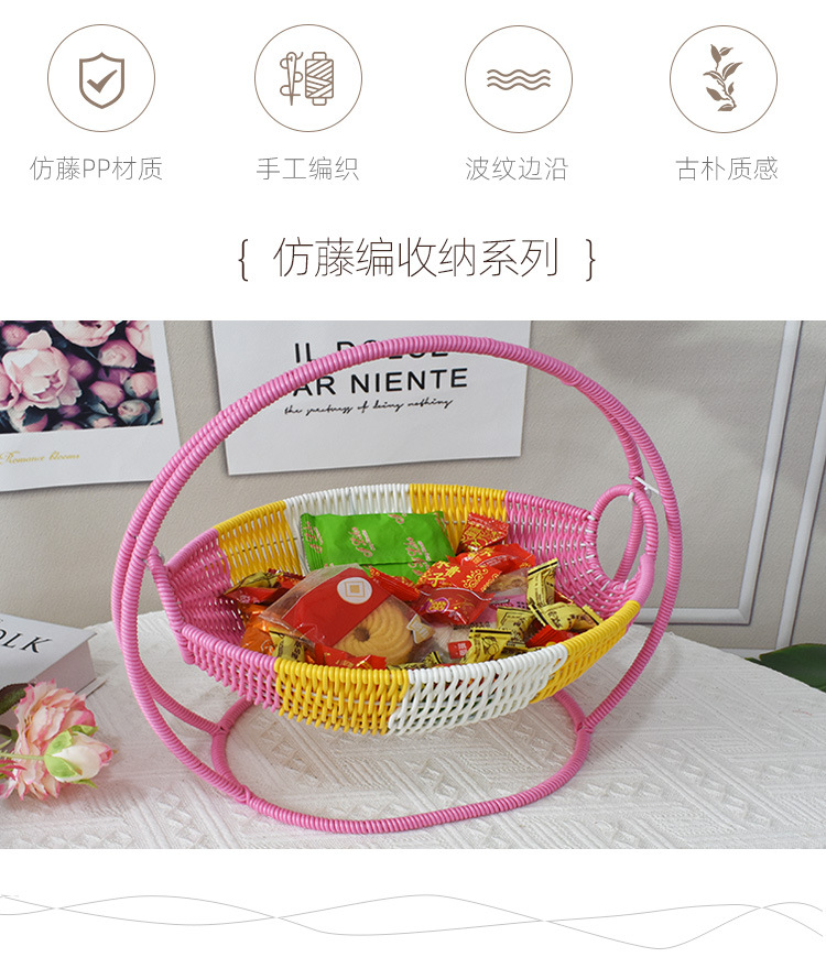 仿藤编织水果篮水果盘零食收纳筐家用客厅煮茶围炉干果蔬菜面包篮