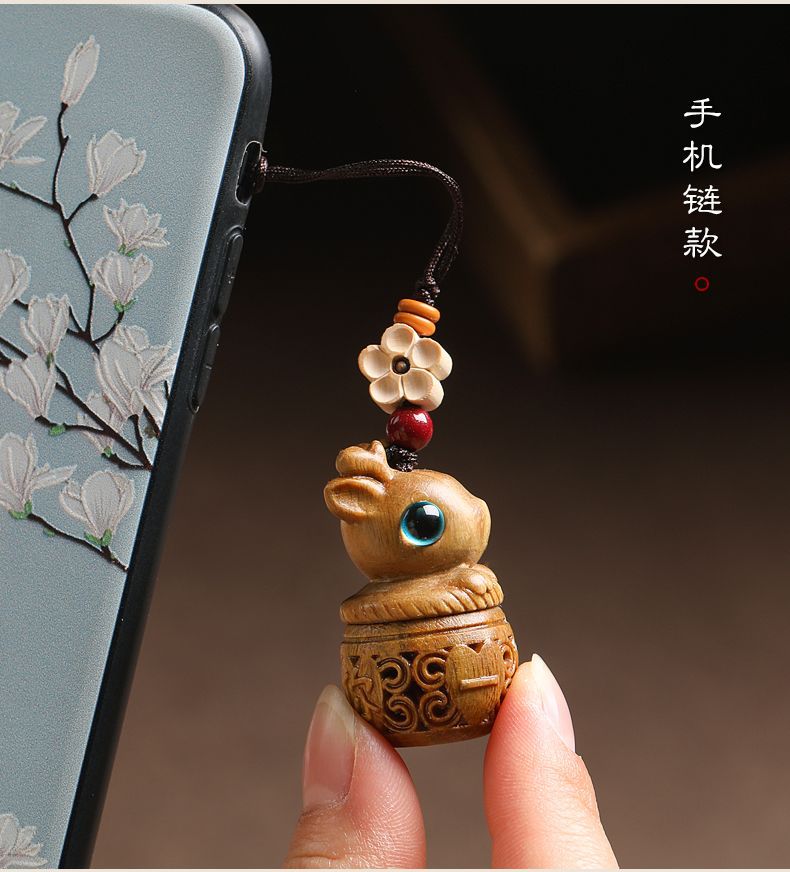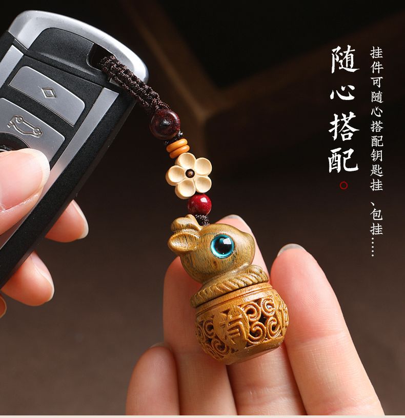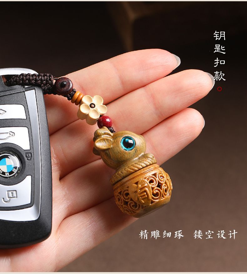 十二生肖崖柏木彫り創意実木自動車キーホルダー萌えストラッププレゼント国風アクセサリー