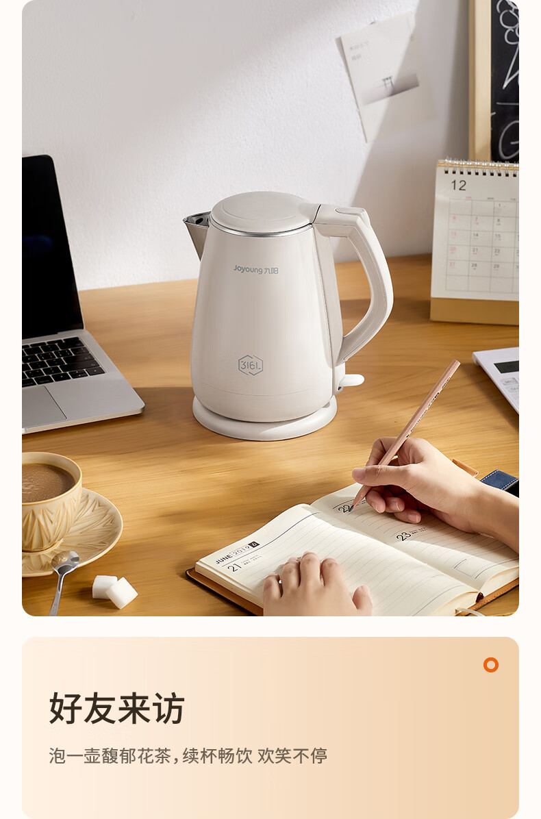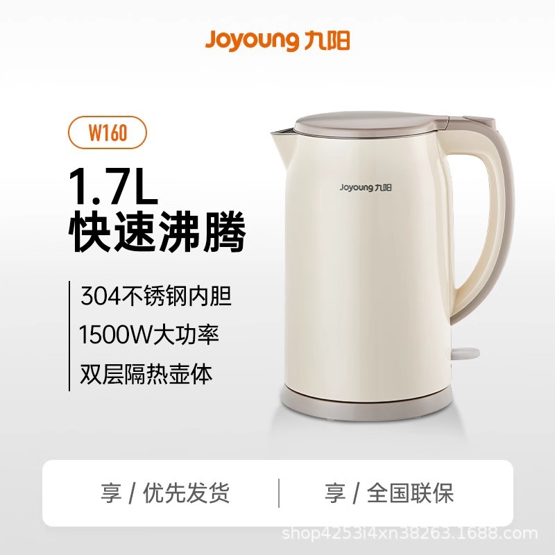 Joyoung 電気ケトル 1.7L 二重層断熱 304L ステンレス鋼 K17FD-W160
