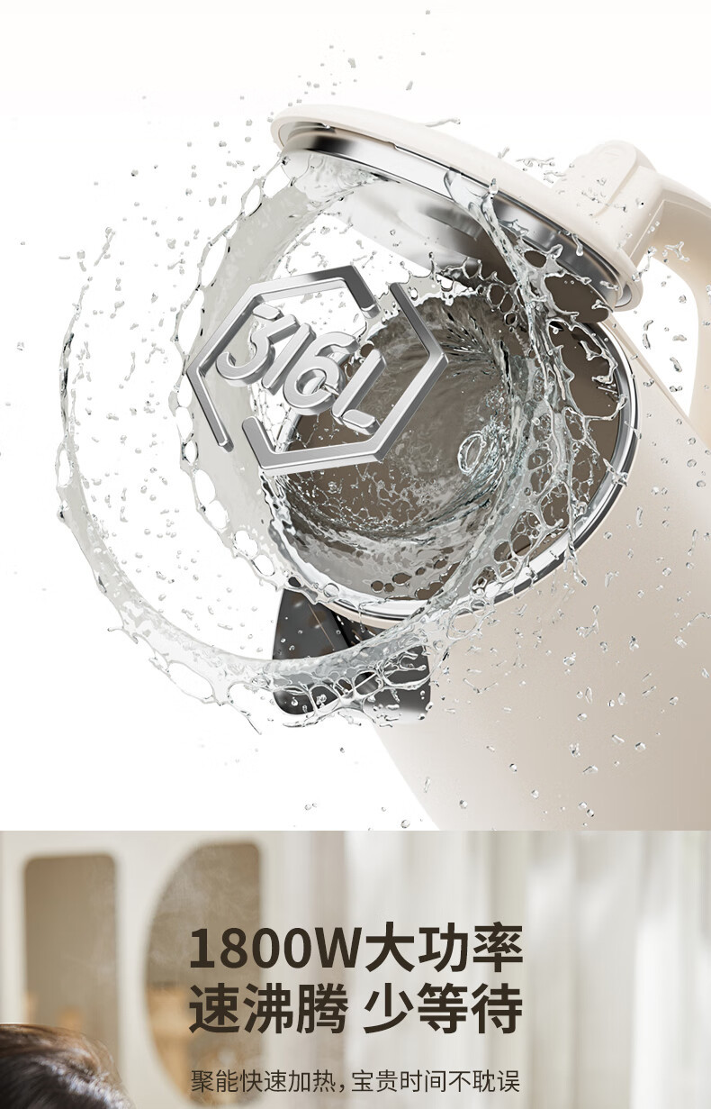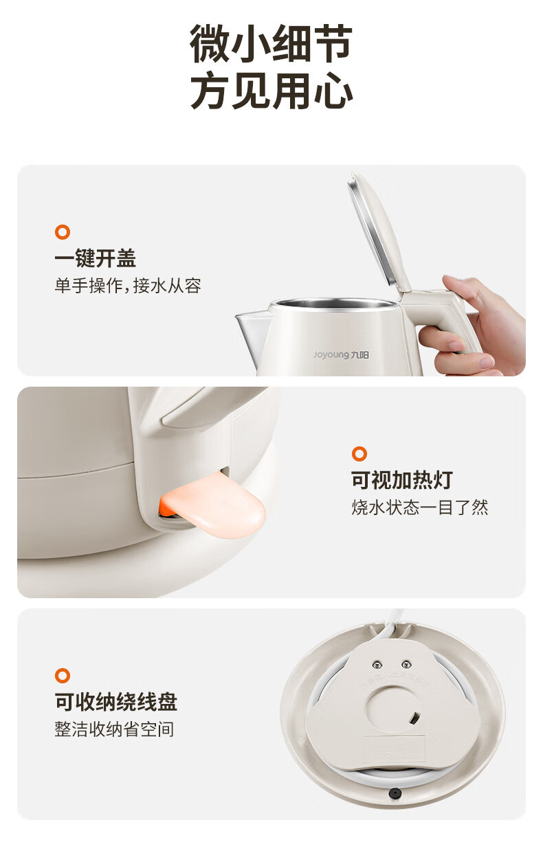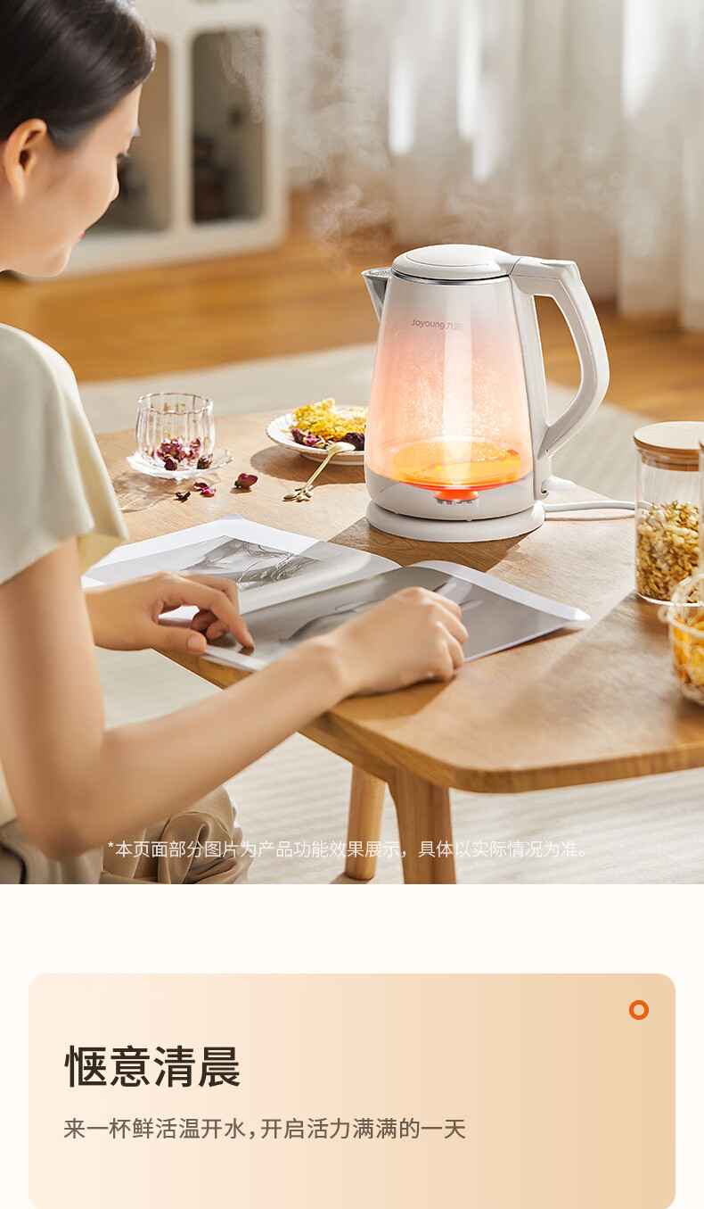 九阳电热水壶家用烧水壶1.7L烧水壶保温一体不锈钢电热壶全自动煮