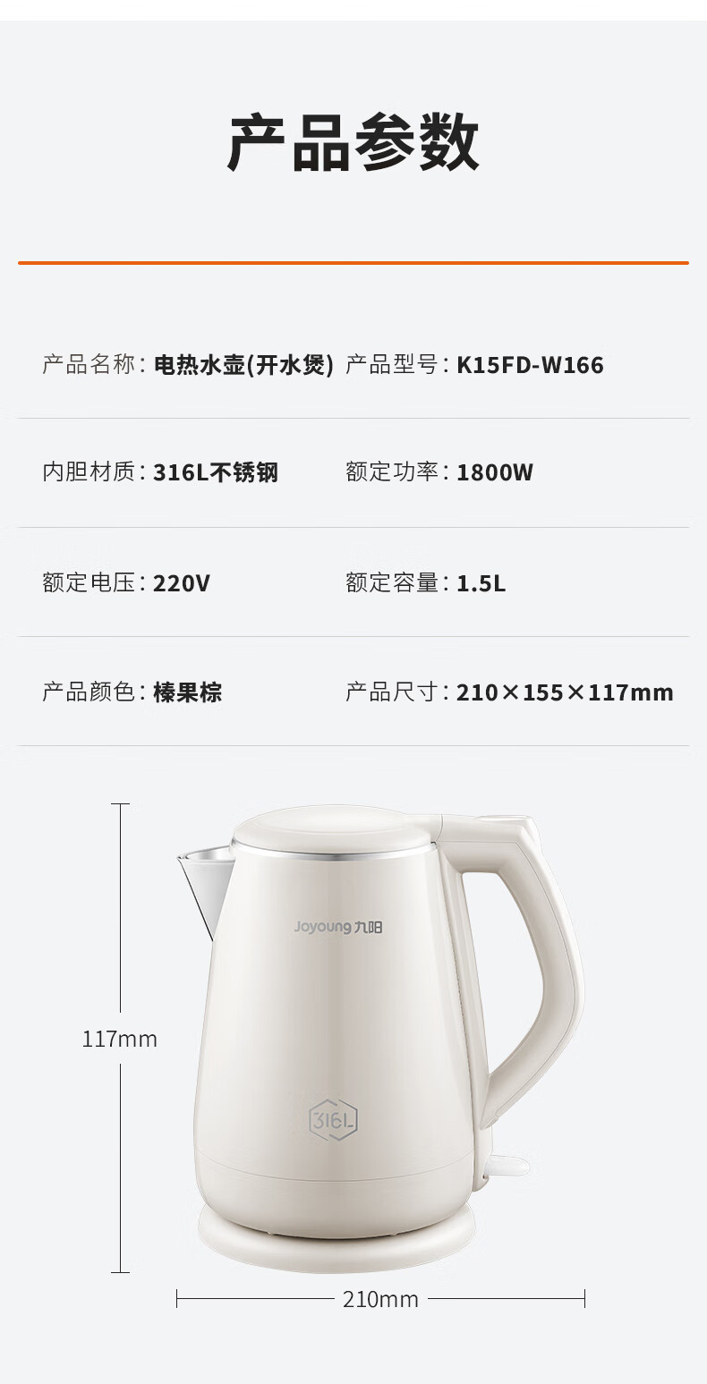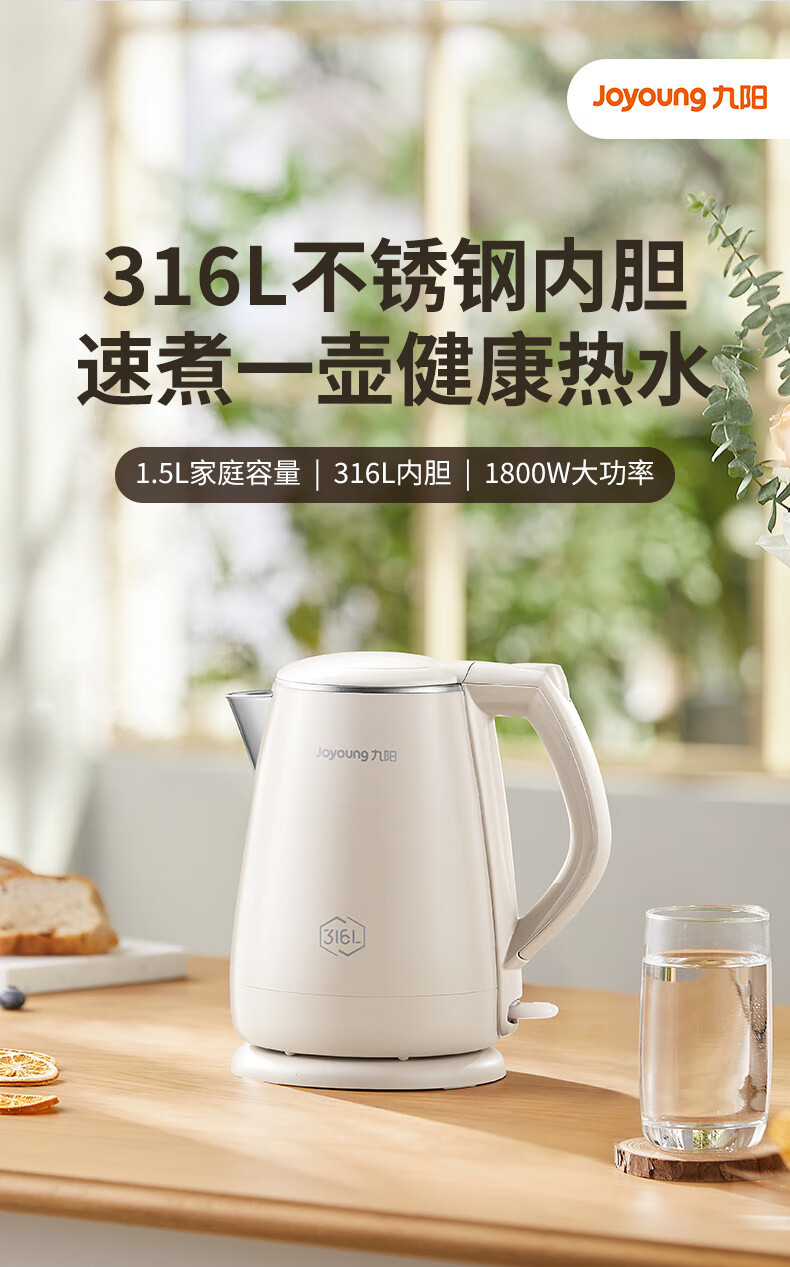 九陽電気ポット二層パーマ防止316Lステンレス家庭用大容量電気ポットK15FD-W166