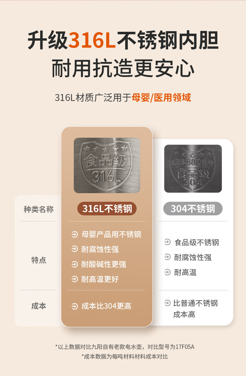 九陽ポット湯沸かし器1.7l二重断熱316lステンレスK17FD-W160Pro