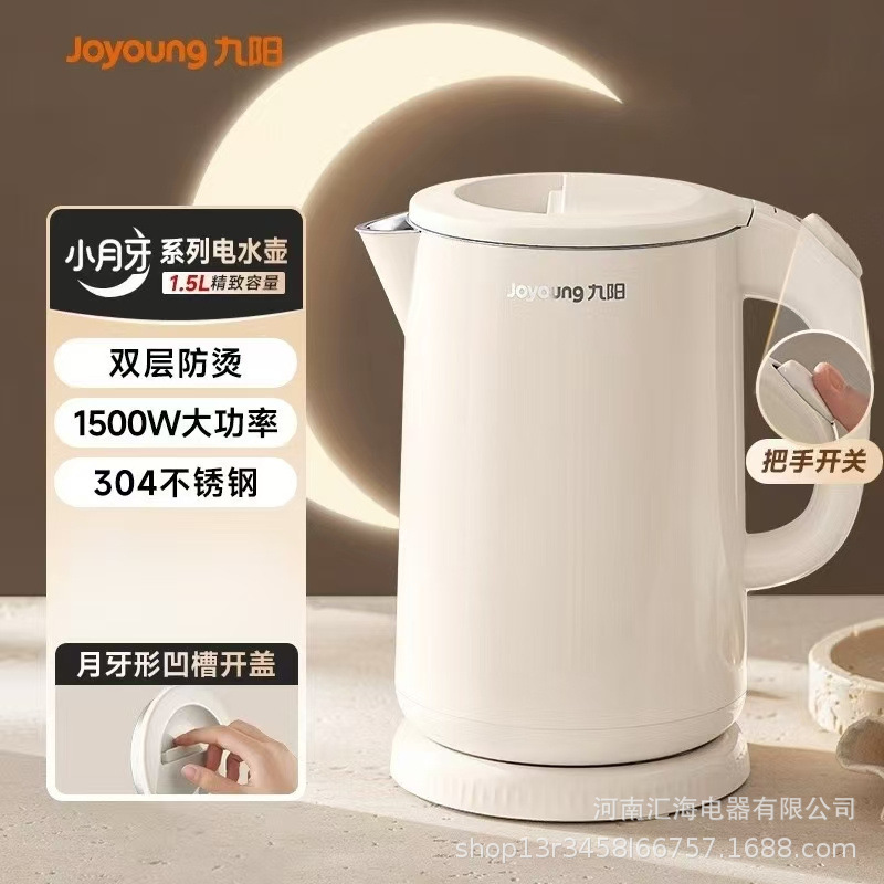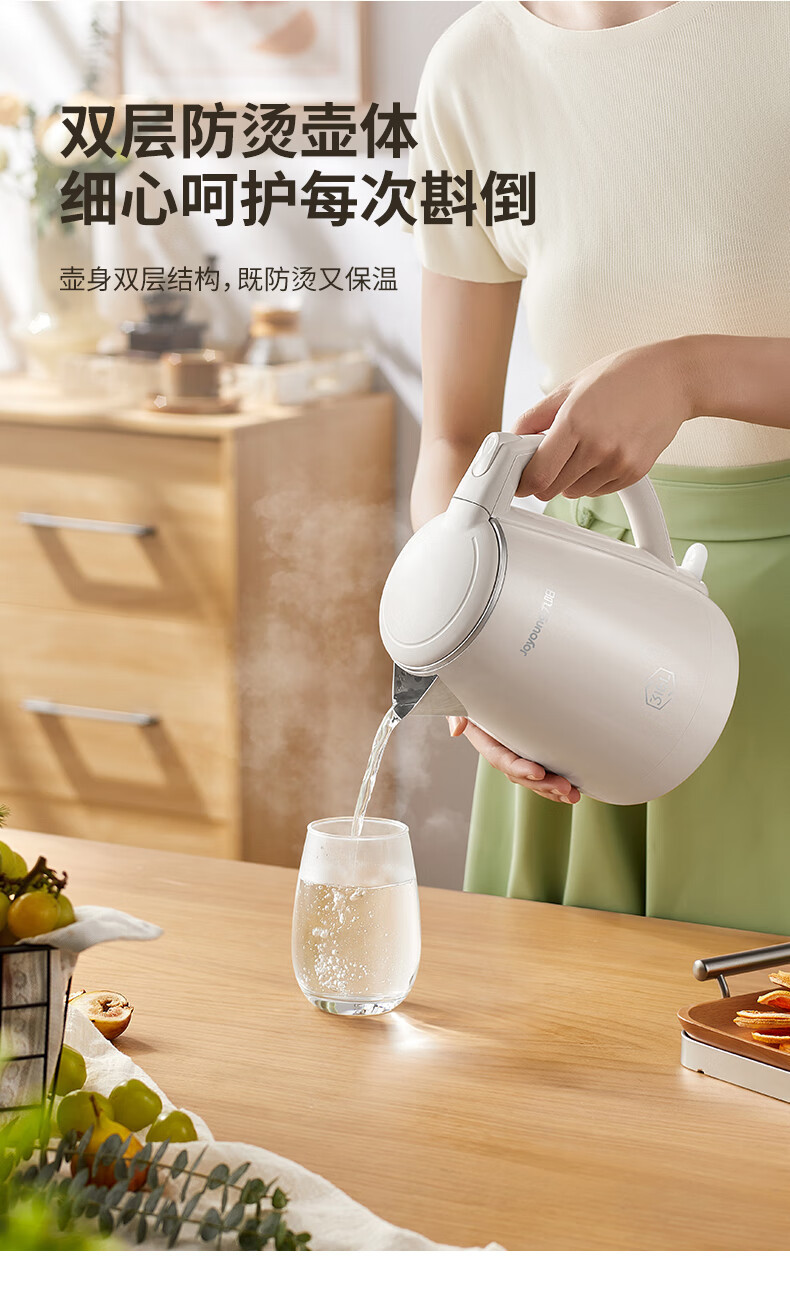 九阳电热水壶K15FD-W100家用1.5升烧水壶开水煲双层防烫304不锈钢