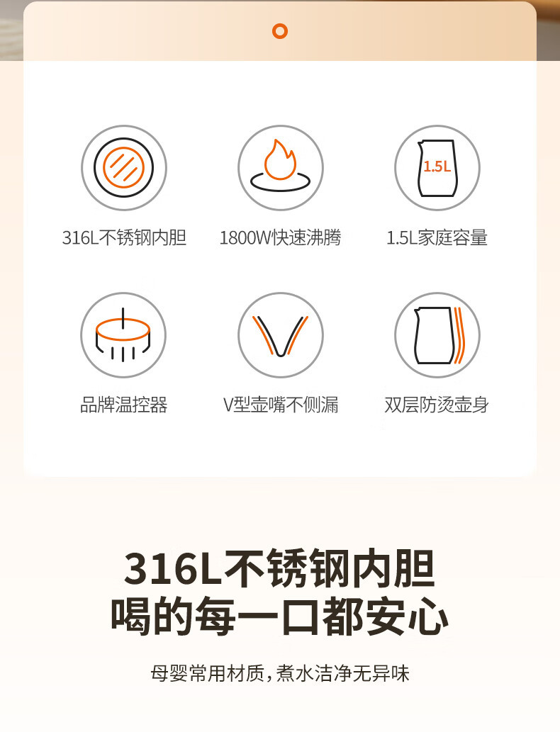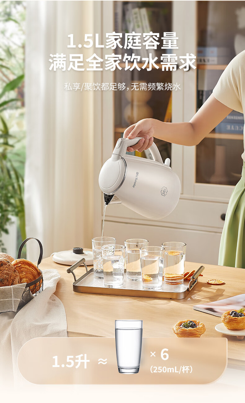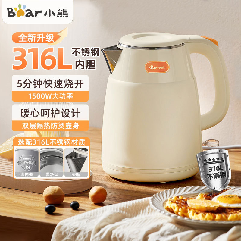 小熊ZDH-R15F7烧水壶电热水壶316不锈钢开水壶速热双层防烫电水壶