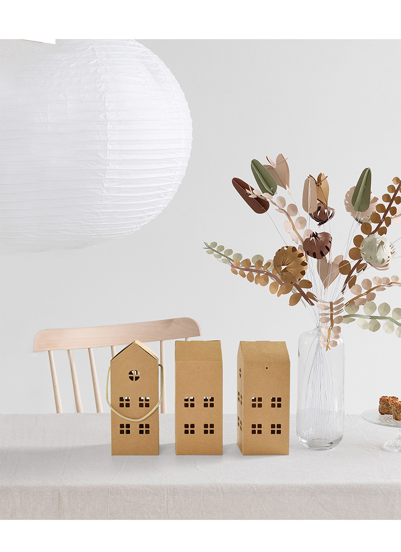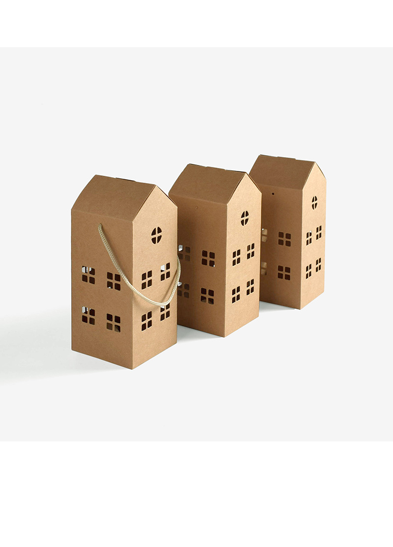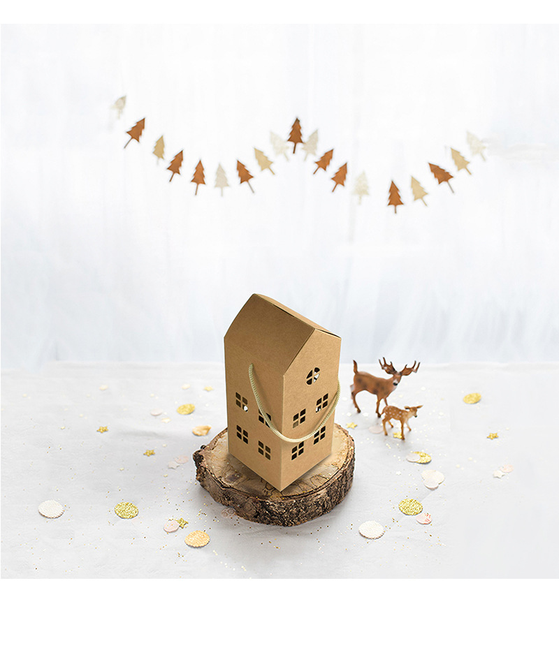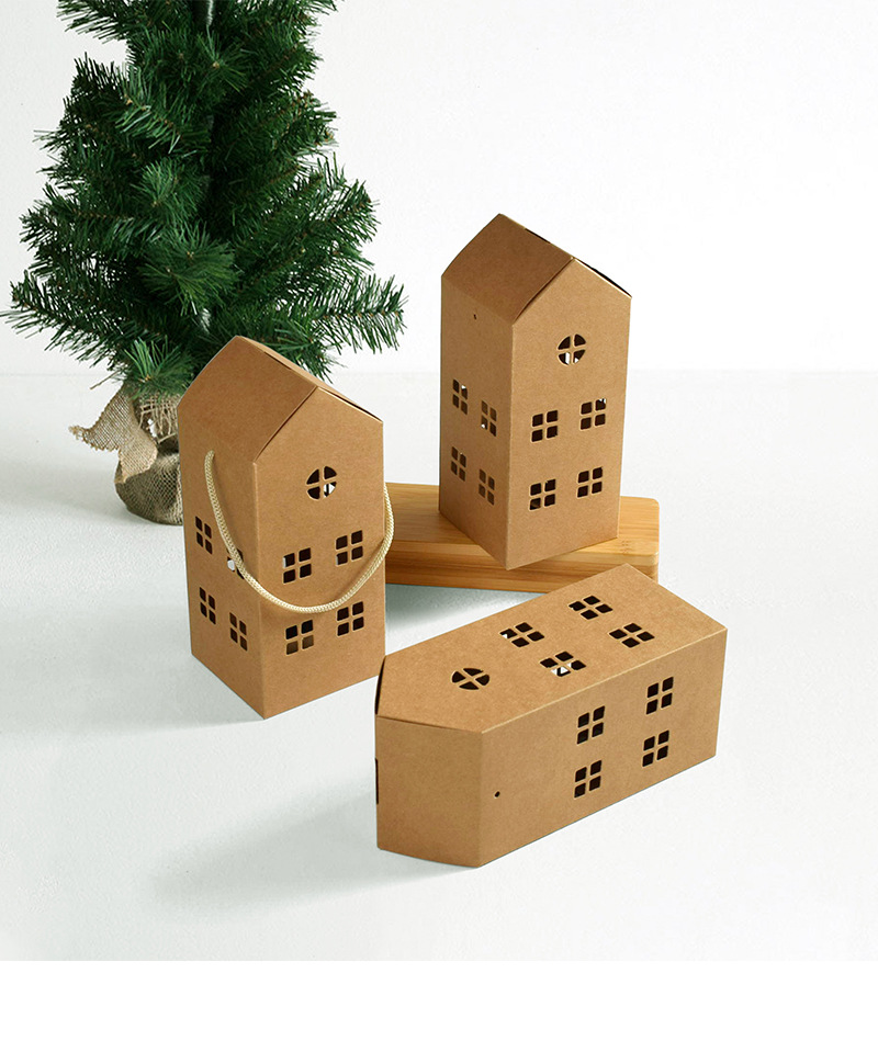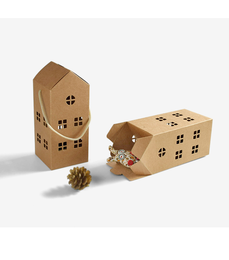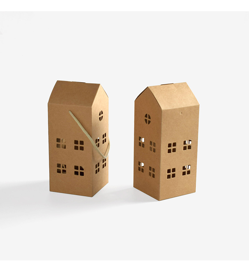 創意的な赤い屋根の家の北欧風のシンプルなカラーの贈り物の箱の現物は包装の牛を焼きます。