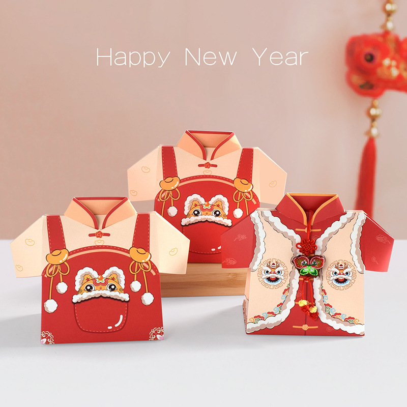 新年の赤い喜気吉祥唐装形状キャンディー箱現物吉祥事かわいい新年喜糖折り畳み包装箱
