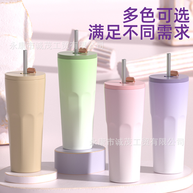 新しいウォーターカップ 750 ミリリットルステンレス鋼バウンスストローカップポータブルクロスボーダー印刷可能なロゴ車魔法瓶カップ
