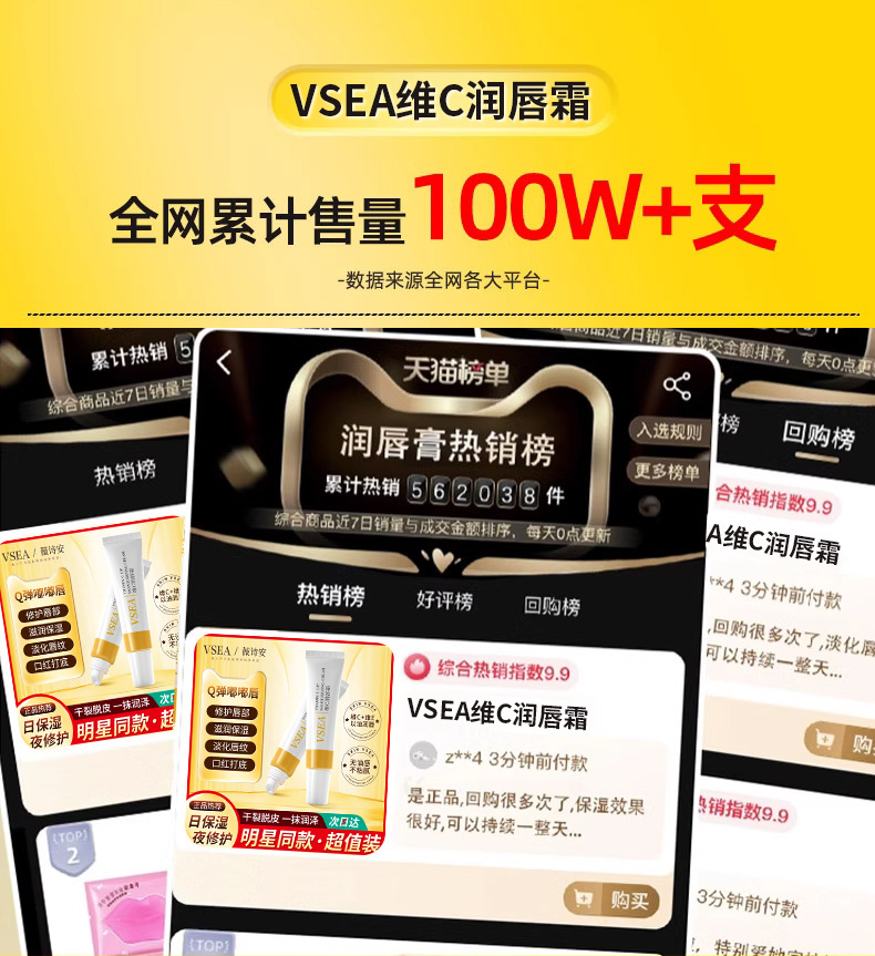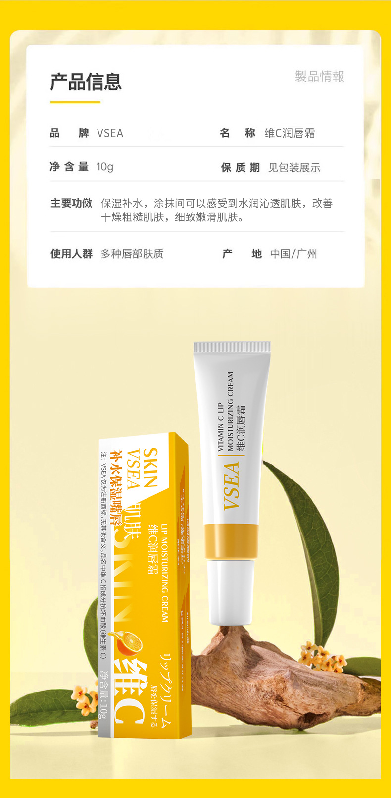VSEA維c潤唇膏ワセリン修護唇部補水保湿防乾裂唇膜潤唇膏正品卸売り