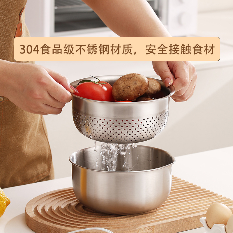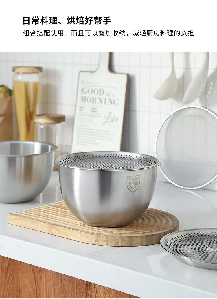 多功能沥水篮料理盆304洗菜盆淘米冲孔米筛 沙拉盆烘焙打蛋盆新品
