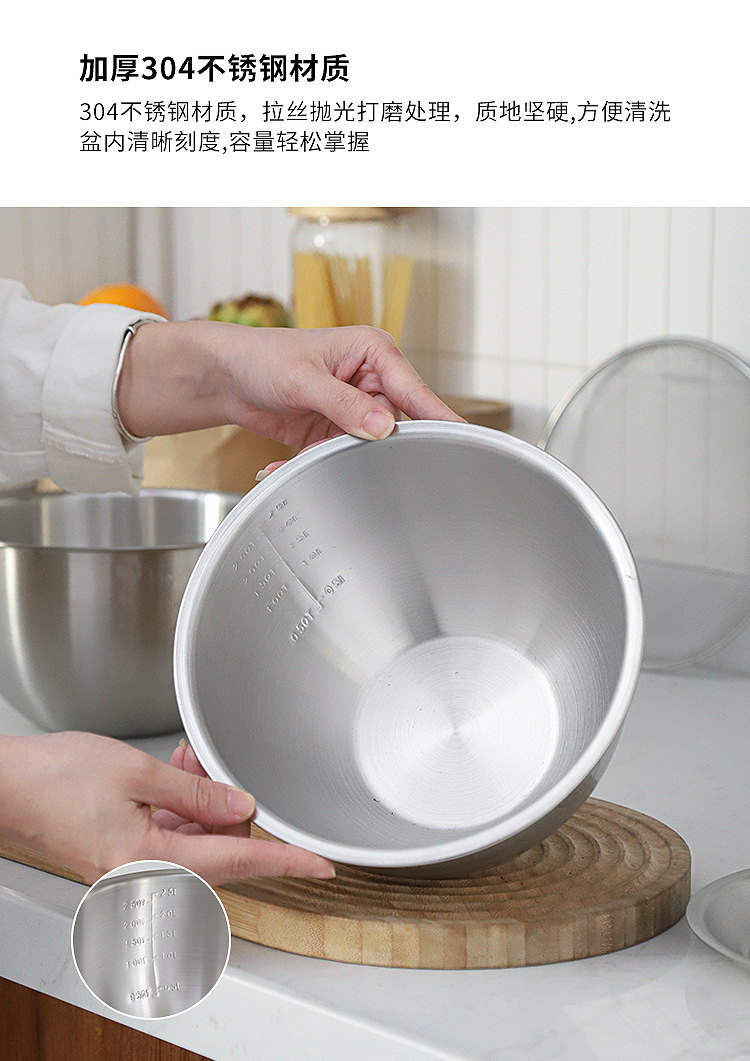 304 ステンレス鋼のミキシングボウルと箸、ミニ目盛り付き V 字型口サラダボウル、食品グレードの家庭用キッチンベーキングセット