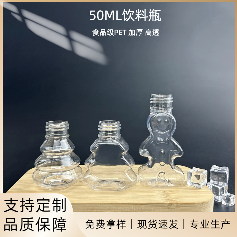 50ML圣诞树姜饼人瓶子塑料透明空瓶食品级PET饮料果汁瓶工厂现货