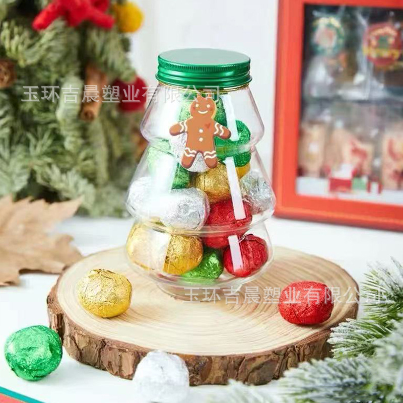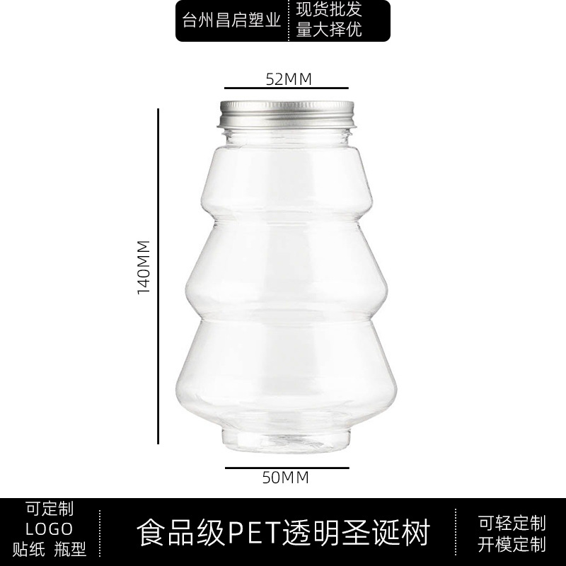 跨境圣诞树透明瓶子高档logo塑胶瓶糖果密封蜂蜜食品级塑料包装瓶
