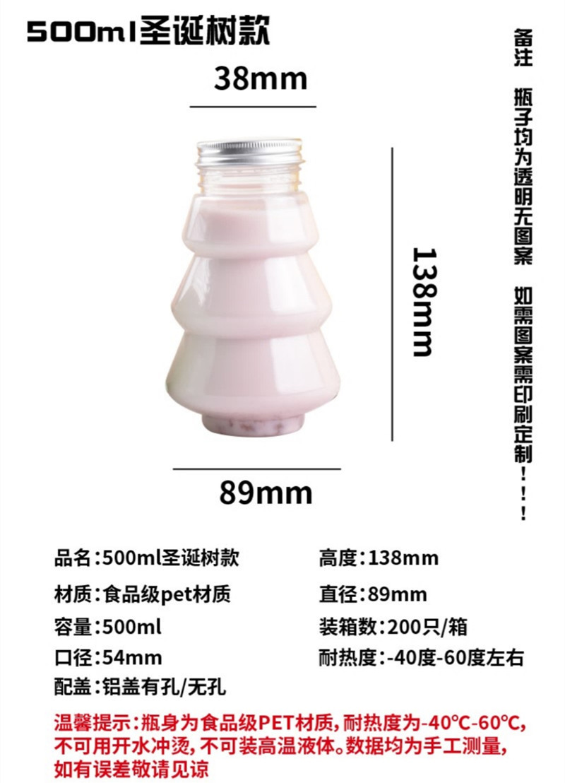 500ml圣诞树饮料瓶透明广口奶茶瓶外带果汁瓶食品级塑料瓶瓶子
