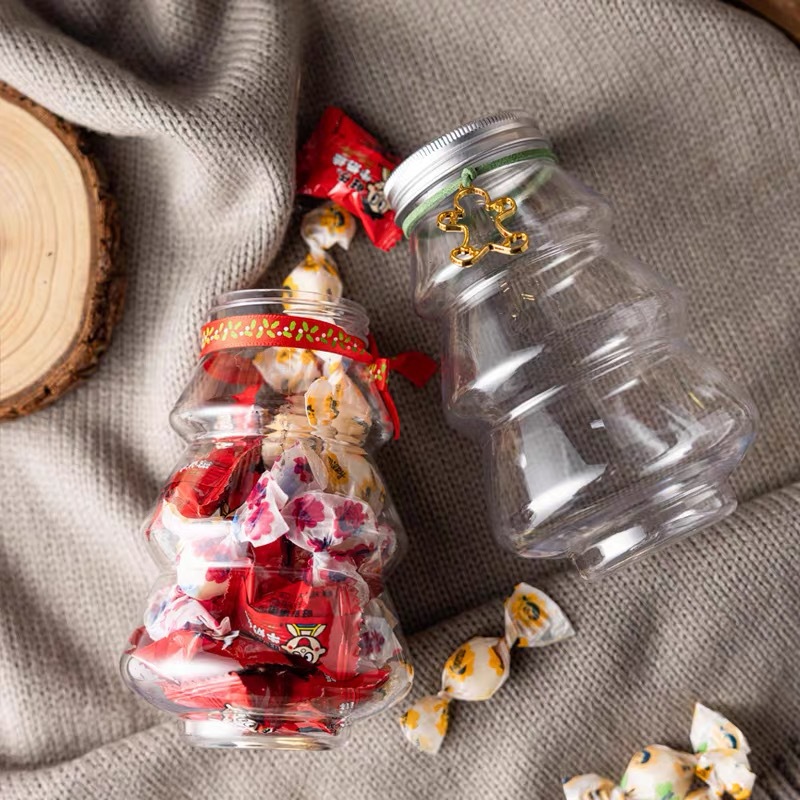 現物500mlクリスマスツリー瓶petビスケットキャンディー包装瓶プラスチック哺乳茶瓶