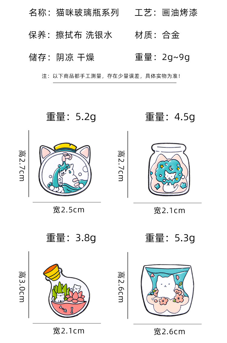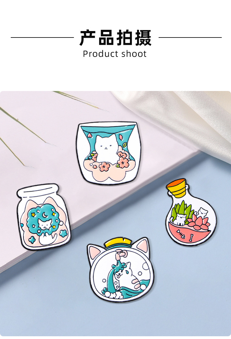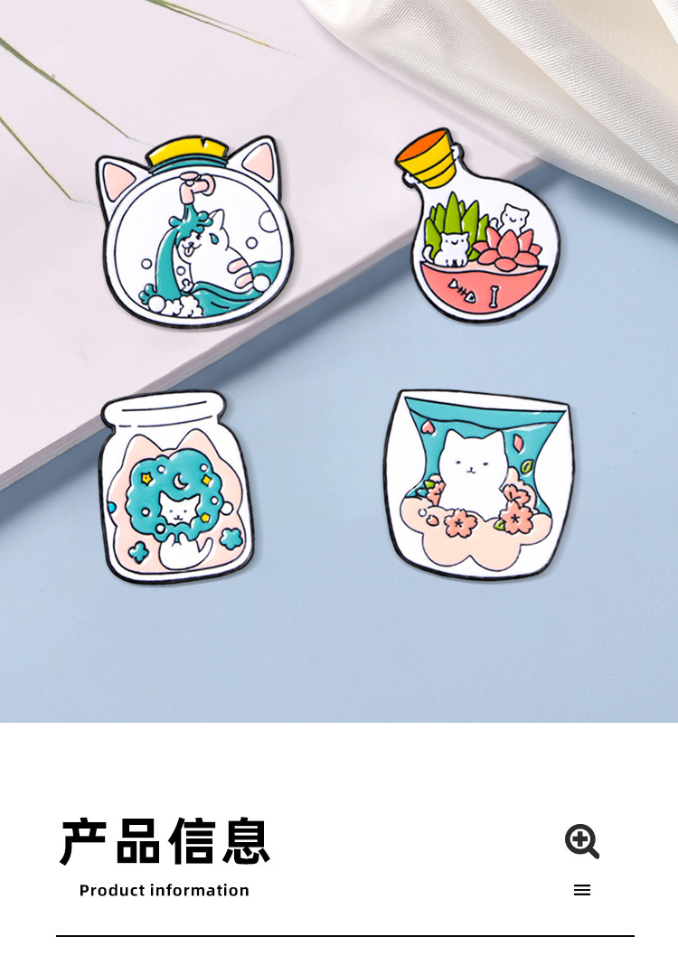 瓶の猫のバッジの漫画の白い猫のブローチの個性のリュックサックの装飾品の服装は金属のピンを飾ってクロスボーダーを掛けます。