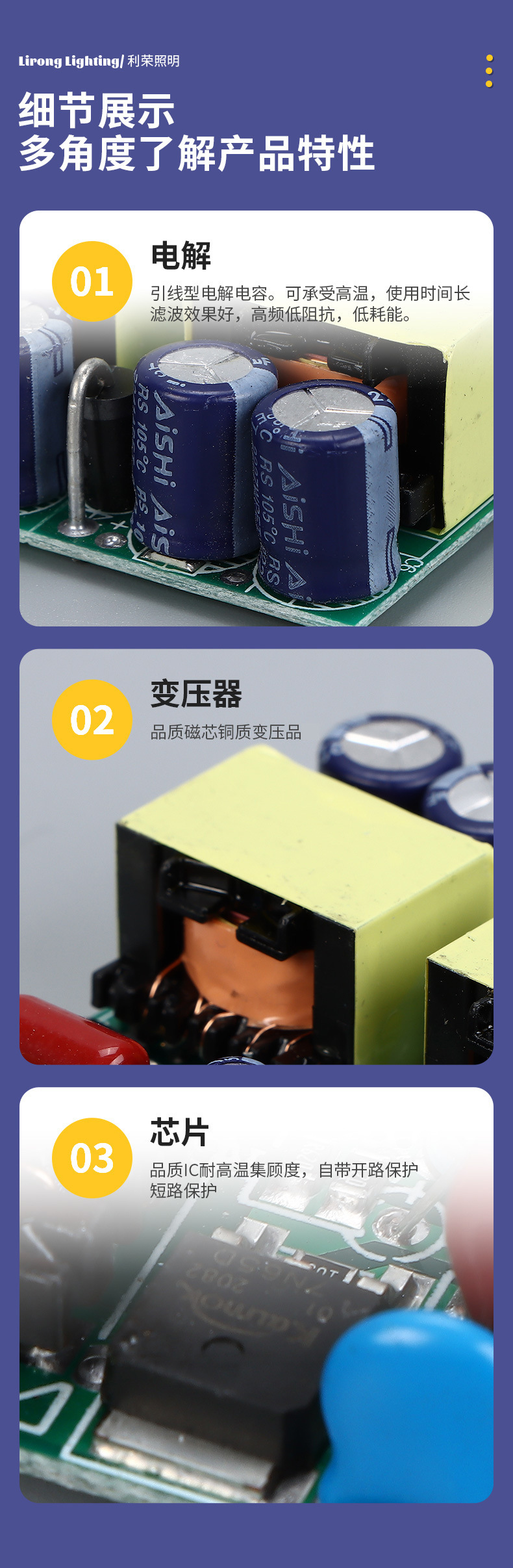 三色セグメント駆動屋外ランプLED電源ドライバオフィスランプ安定器定電流駆動電源付き