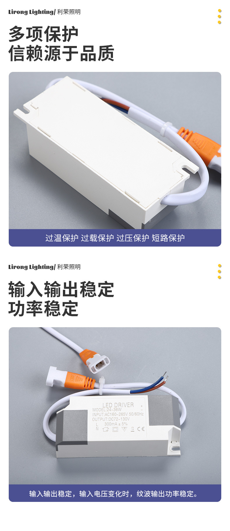 18W36w60wフラットランプ浄化ランプ外付けled電源駆動部品過熱過負荷過電流保護