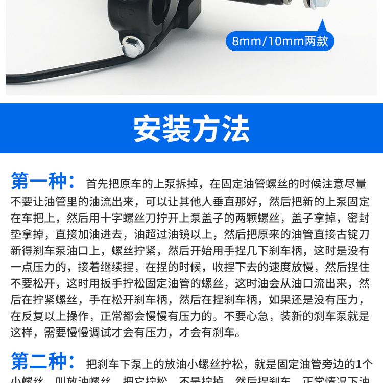 電動自転車卸売 小葉ディスクブレーキ 油圧ブレーキ 前後ブレーキポンプ M10 国家規格 オートバイ