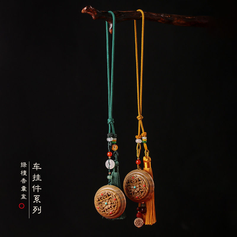 透かし彫りの彫刻の緑の檀の木のペンダントの香の袋の箱のペンダントの小さい置物の男女のフリンジの自動車のペンダントの香りのハンドルの部品