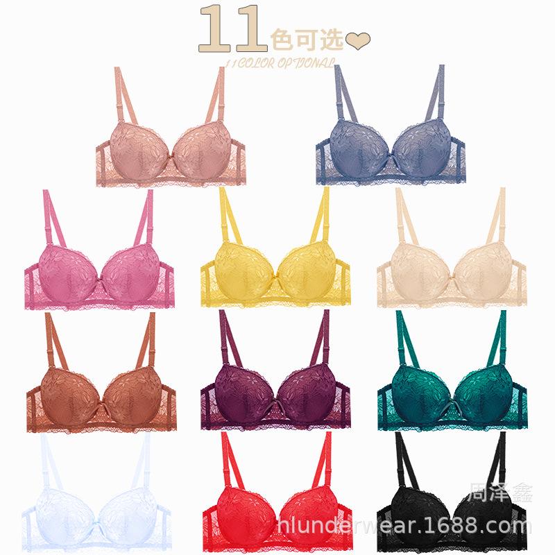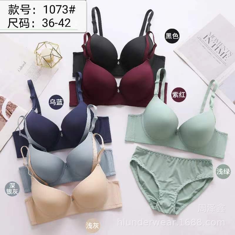 厂家直销新款光面聚拢女士文胸套装多色有钢圈外贸内衣批发