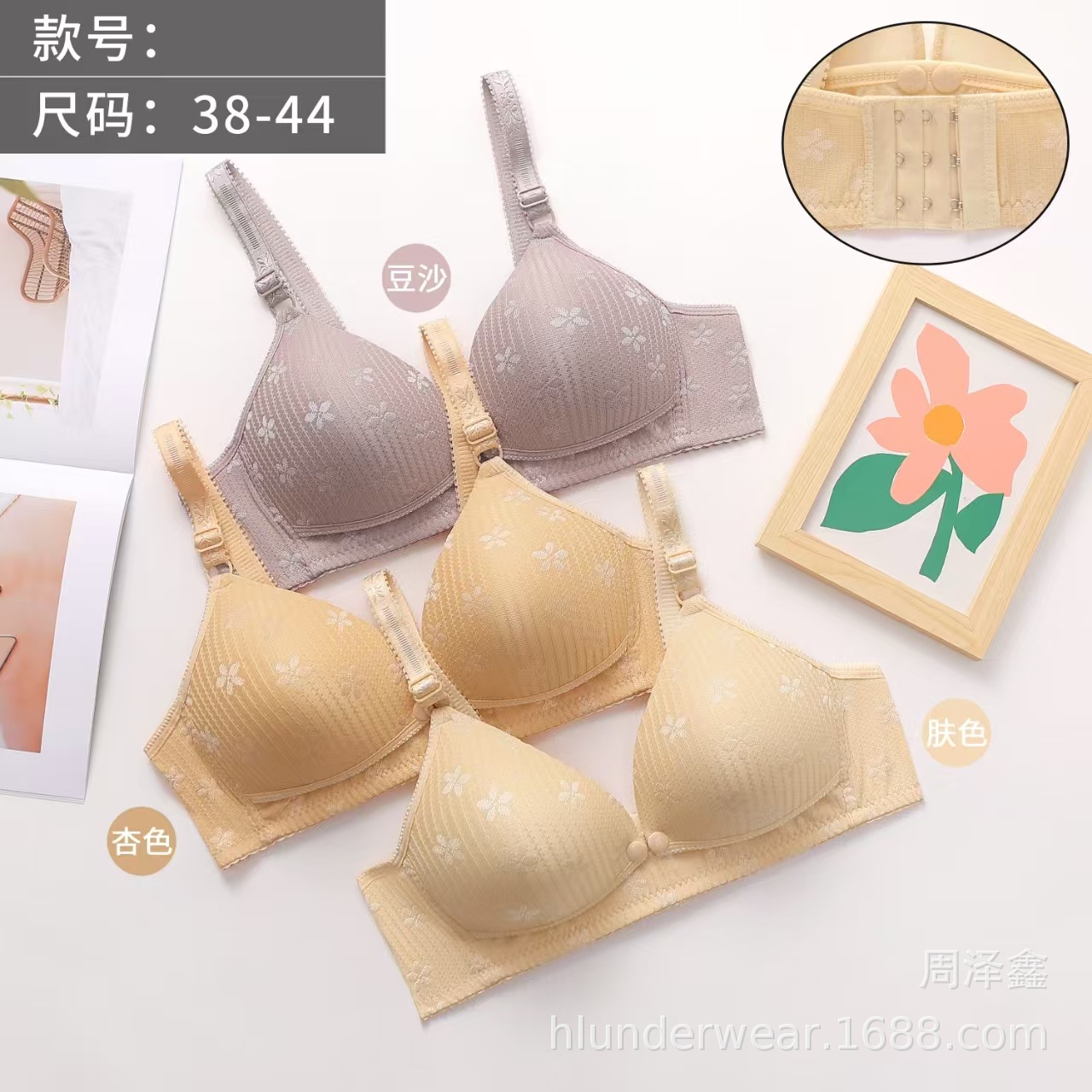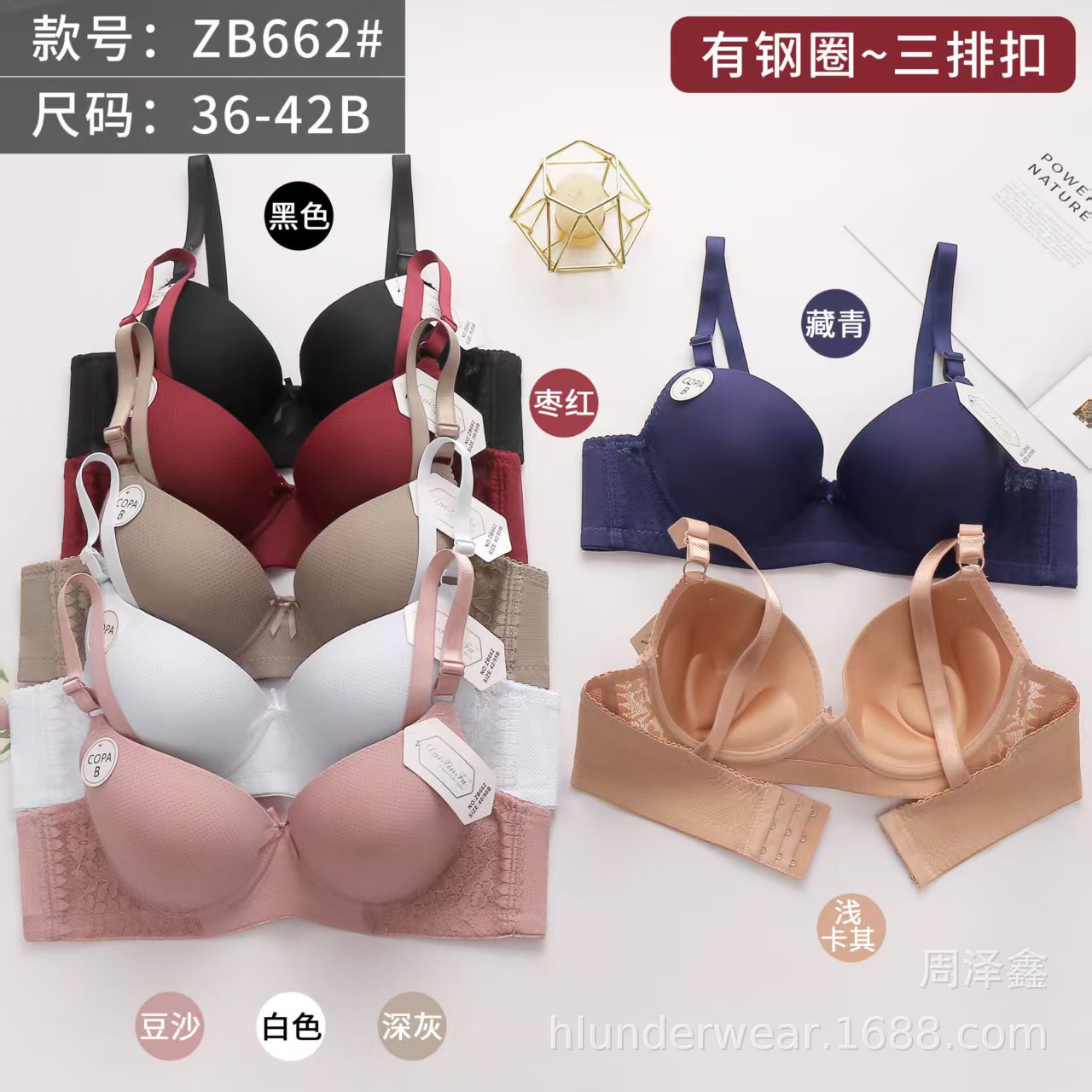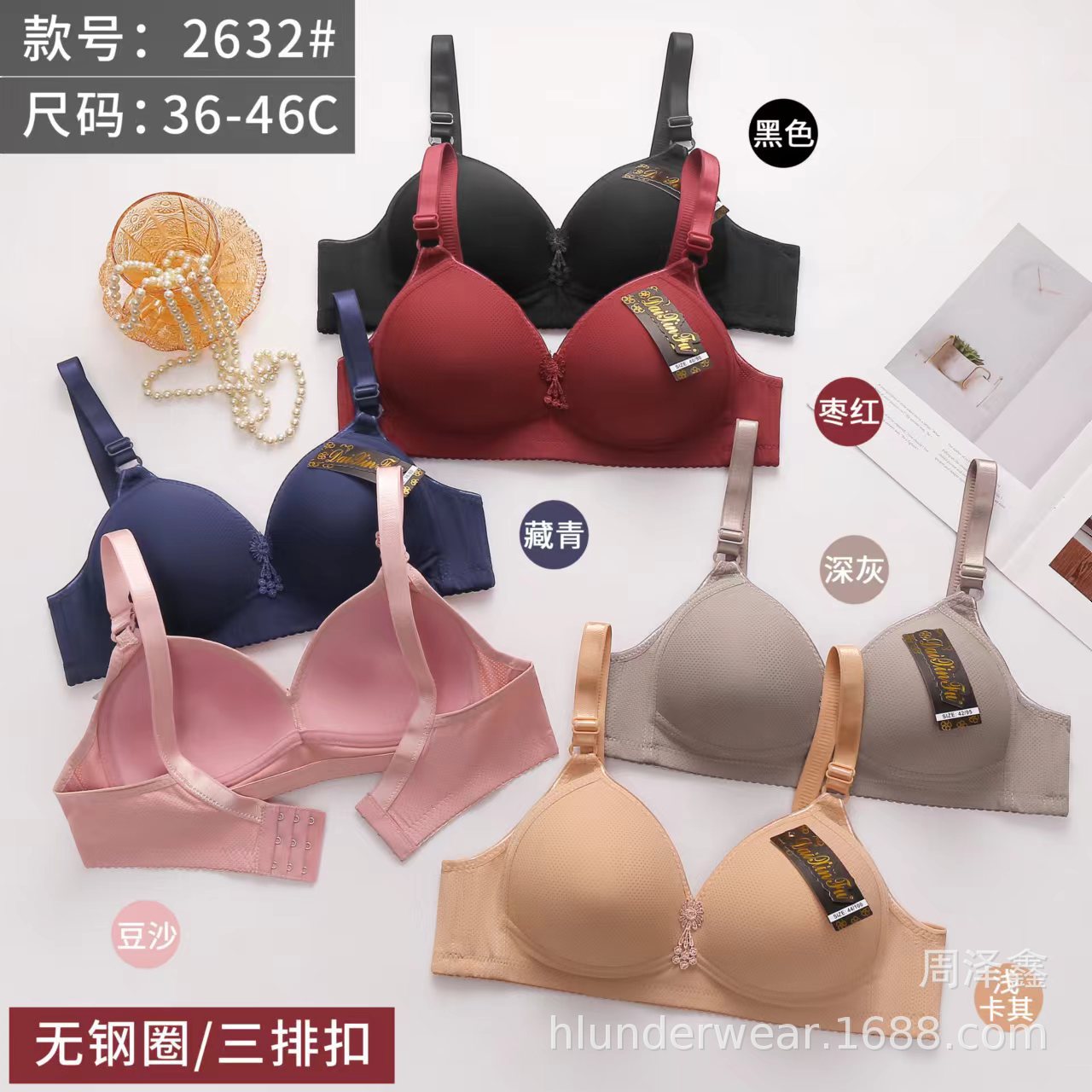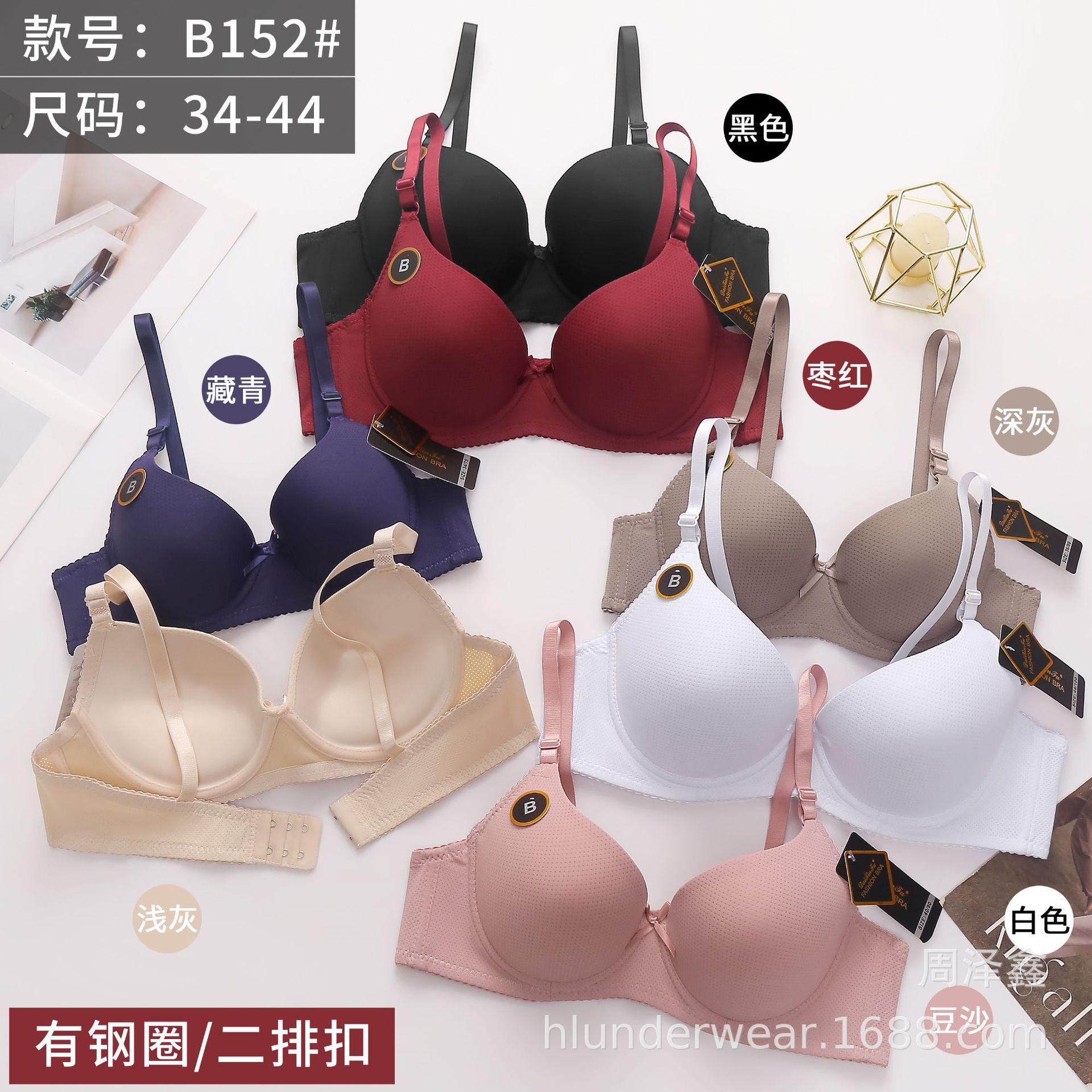 欧米風のスチールリングがあります。ブラジャーの通気孔を設計した後、2列のボタンがあります。