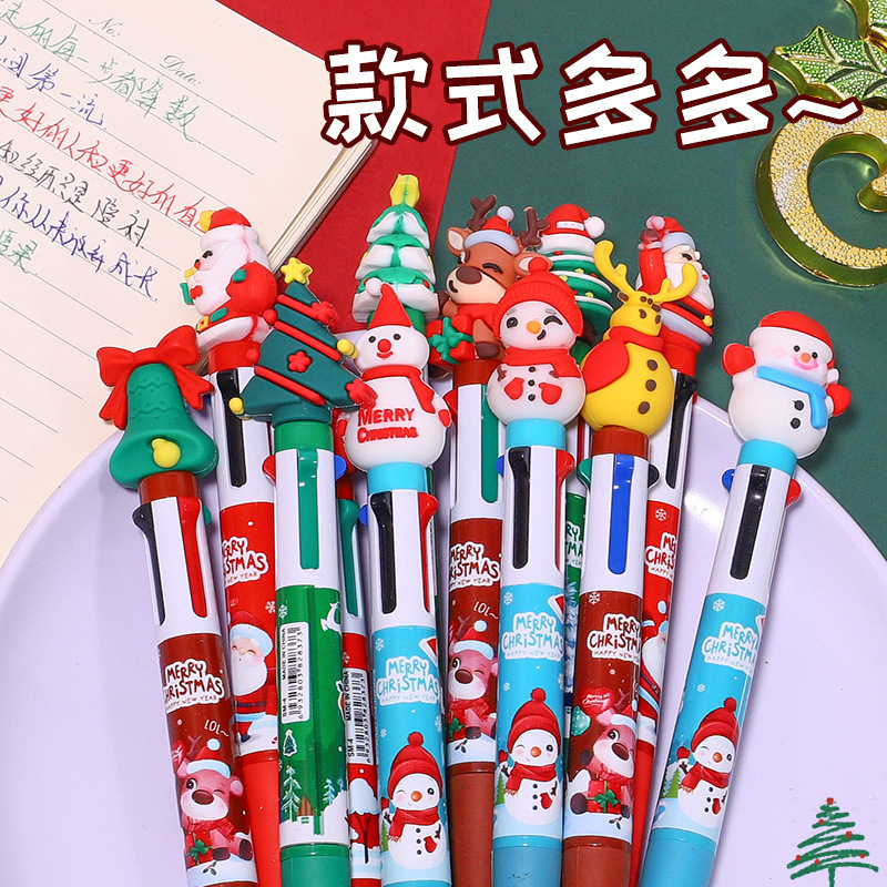 圣诞4色圆珠笔驯鹿造型按动式学生做笔记专用书写流畅节日礼物
