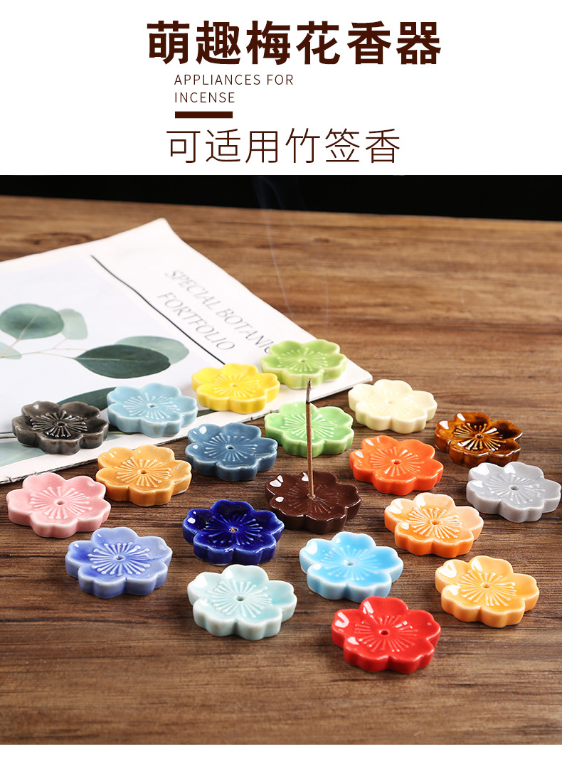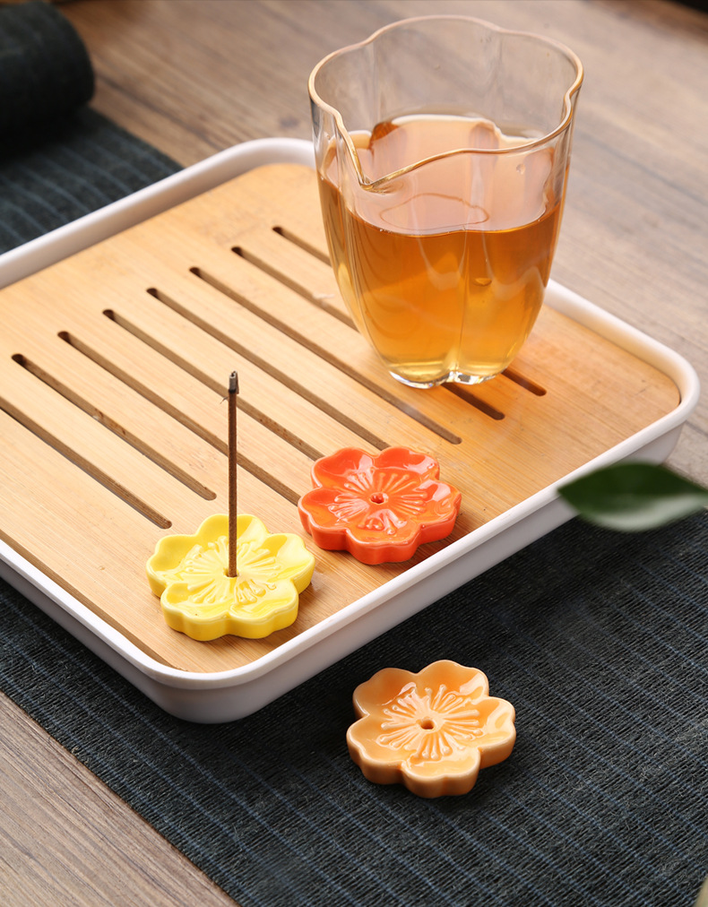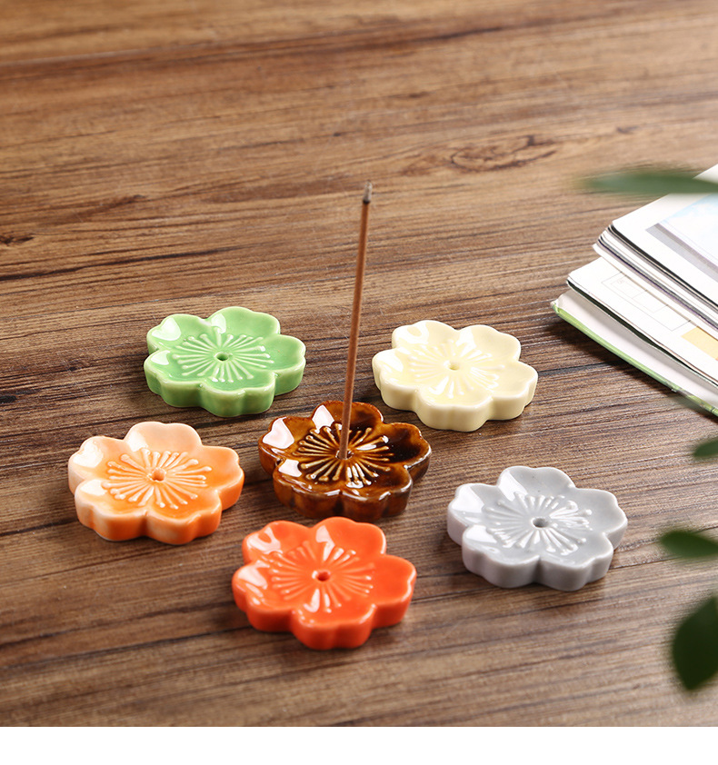 日本式のザカ陶磁器の桜の線香棚の香挿し盤の梅の香座の卸売りの家庭の装飾品の香挿しの置物