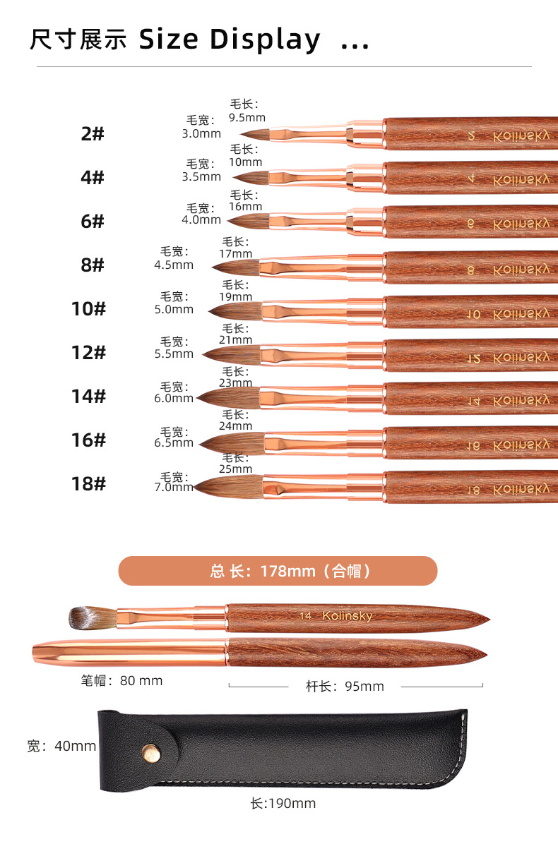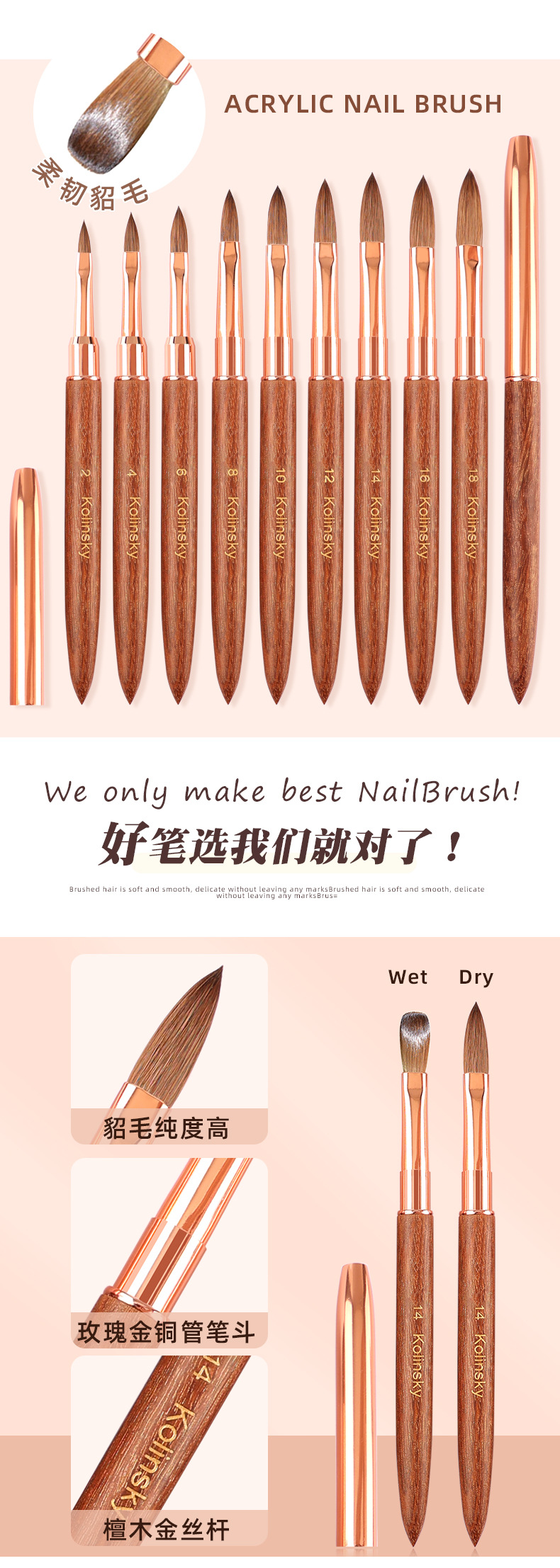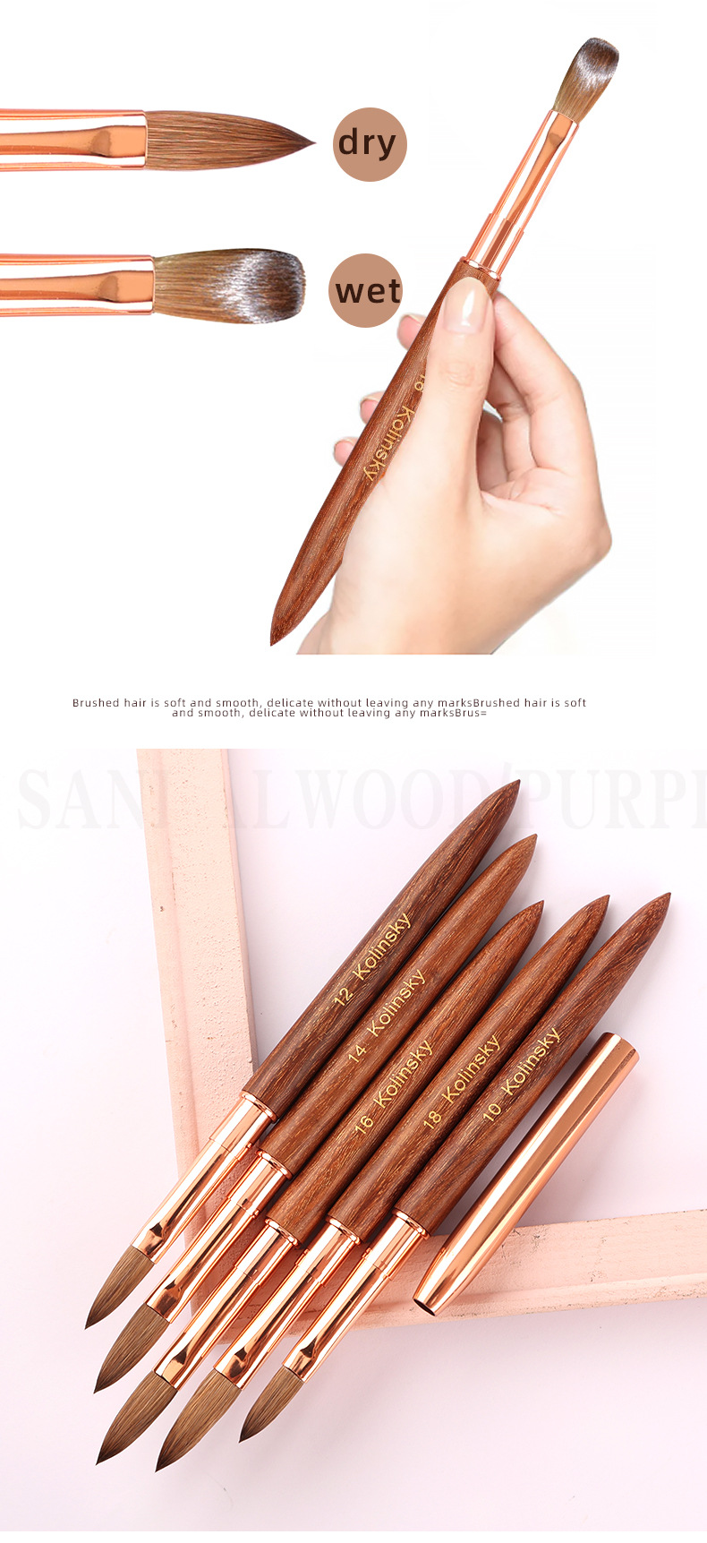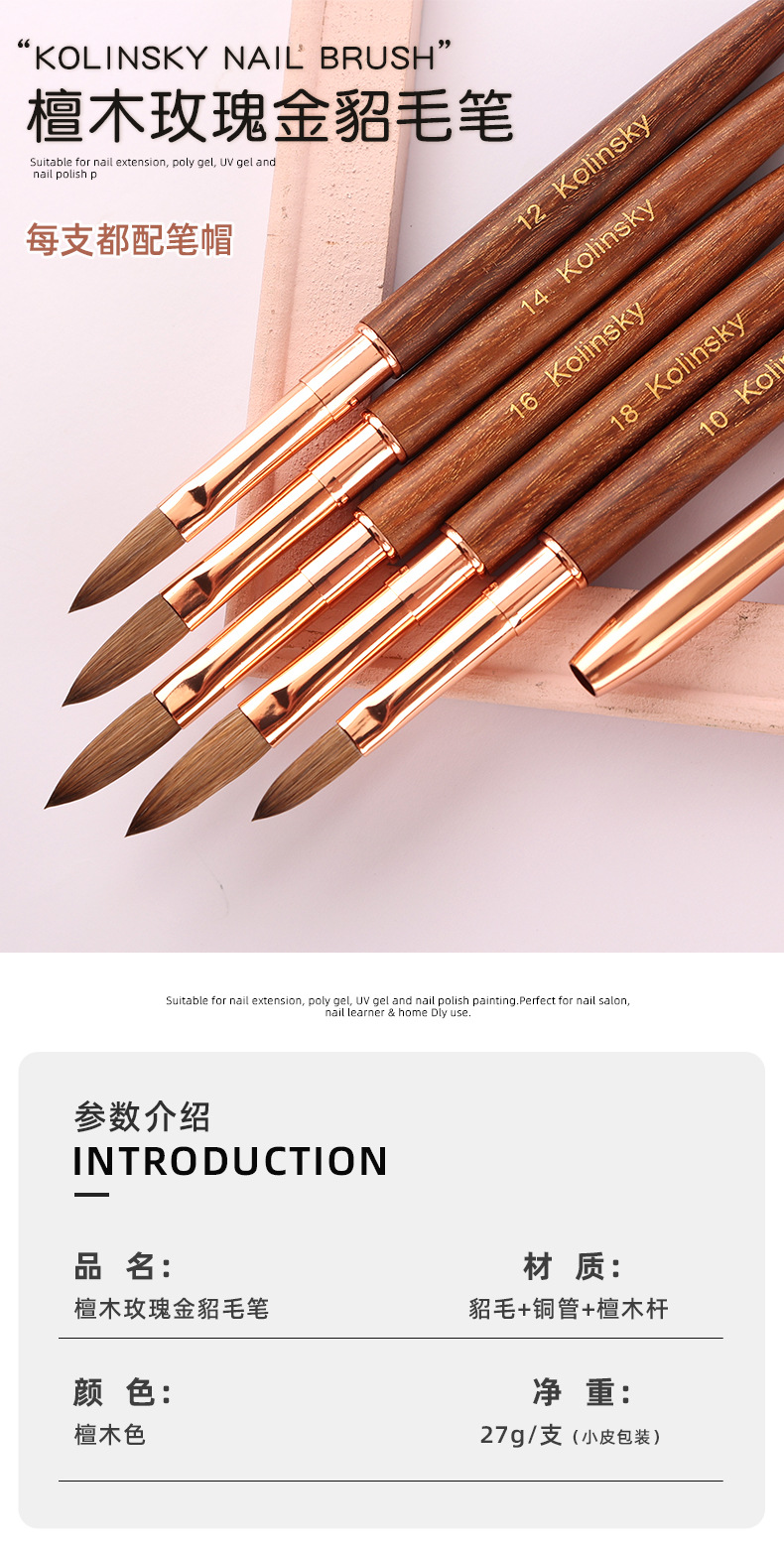 新型バラ金檀木ネイルクリスタルペン丸頭大彫刻ペンkolinskyネイルピン毛ブラシ