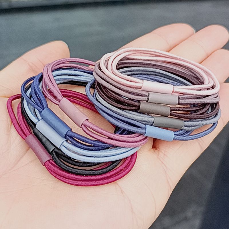 三線一体型韓国版小清新黒色三合一体型カラーロープ高弾力打底皮筋ロープ