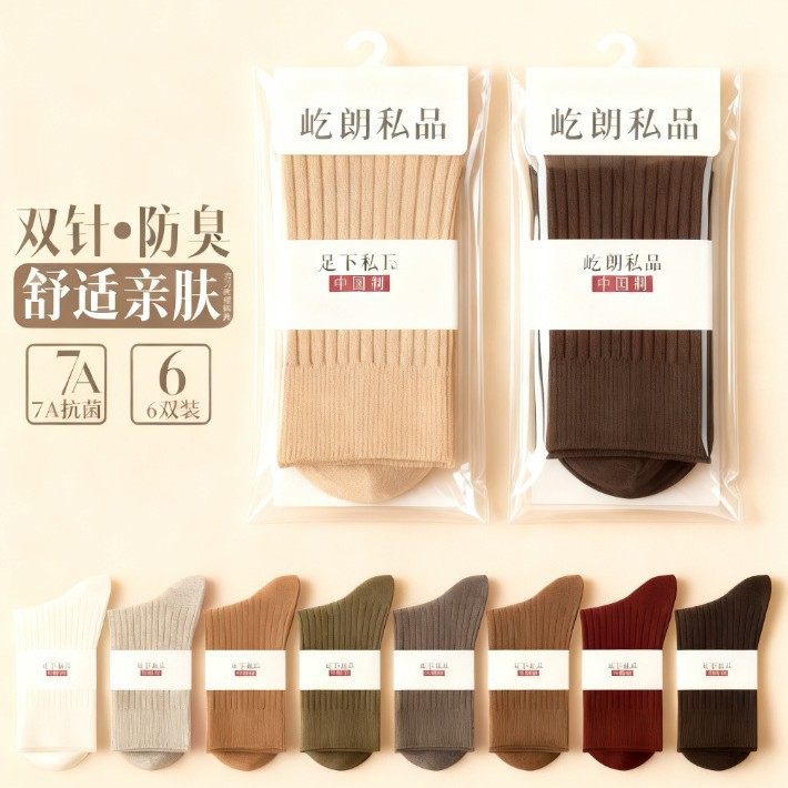 袜子女秋冬中筒休闲百搭复古风正5新爆抗菌月子女士长筒袜